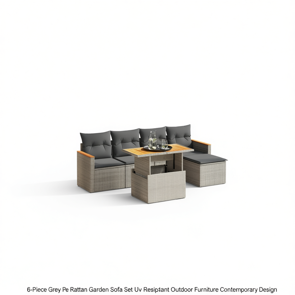 Set Divano da Giardino in Rattan PE Grigio 6 Pezzi, Resistente ai Raggi UV, Arredamento da Esterno dal Design Contemporaneo