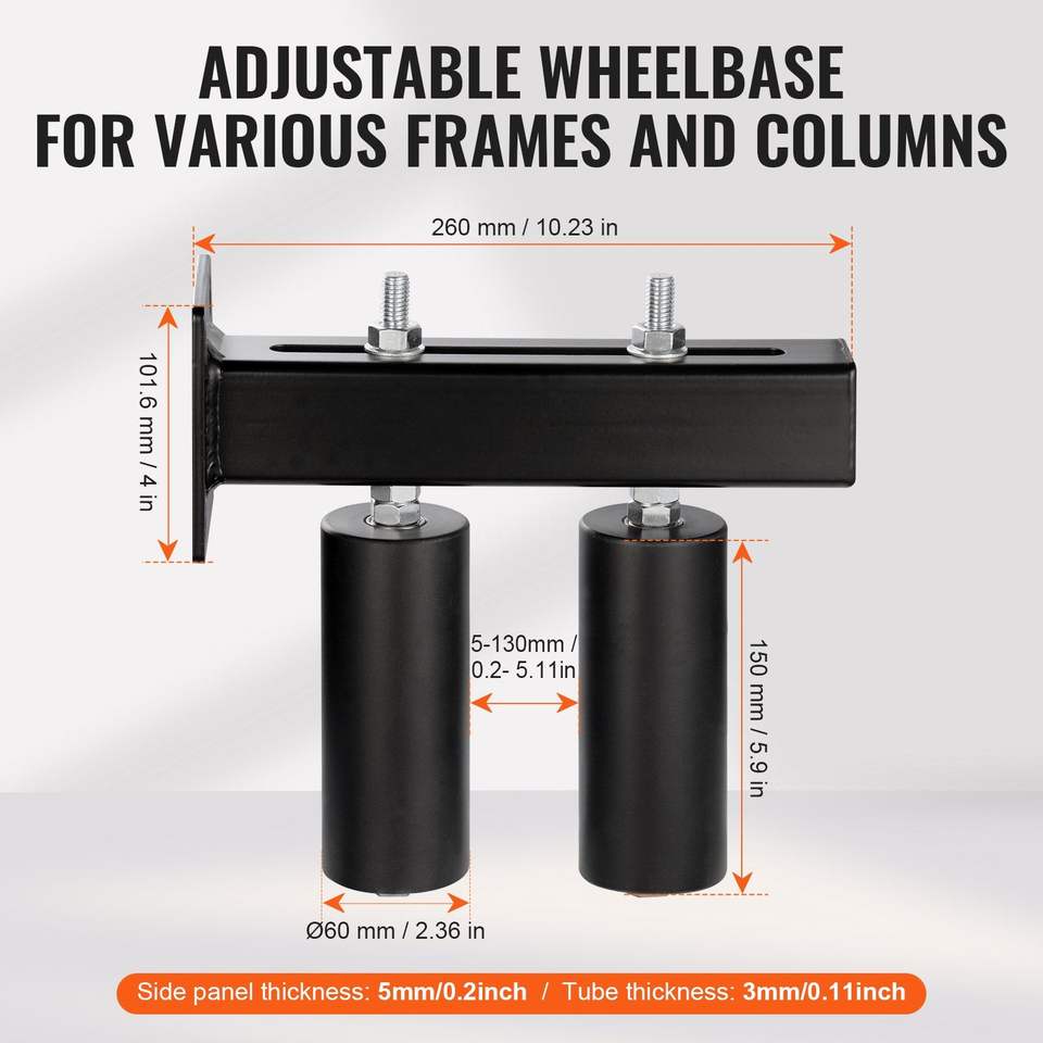 Kit per Cancello Scorrevole a 6 Pezzi, Resistente, Nero, con Staffa a T Universale Regolabile e Rulli per Porte e Finestre