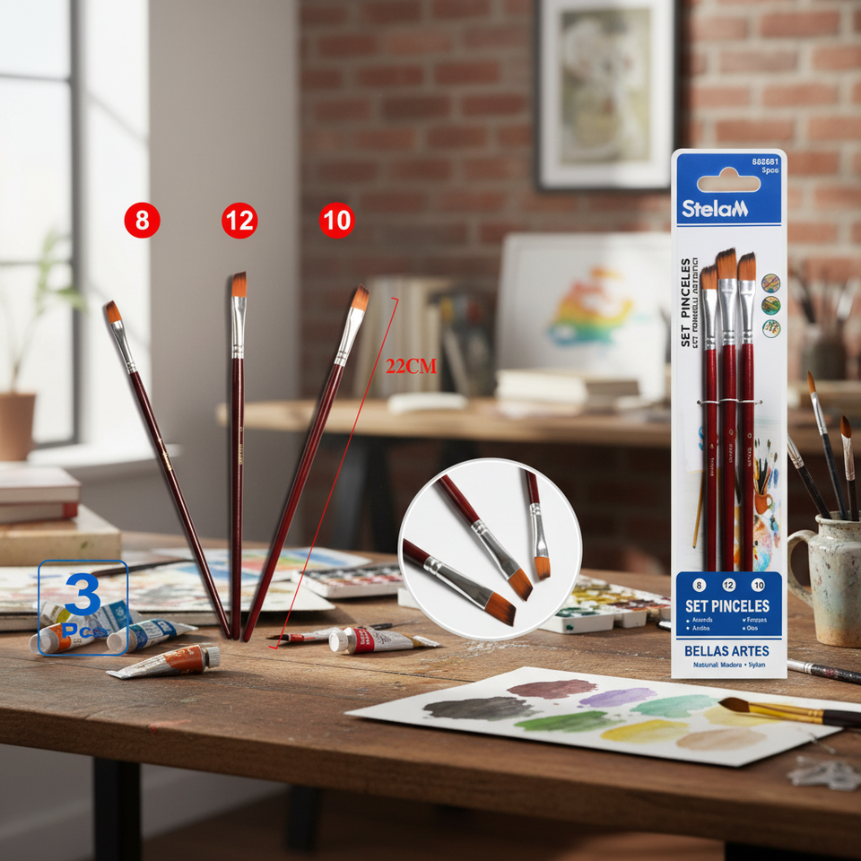 Set di 6 Pennelli per Acquerello in Nylon con Manici in Plastica Bianchi Trasparenti Marroni Marca Peiyong Cina