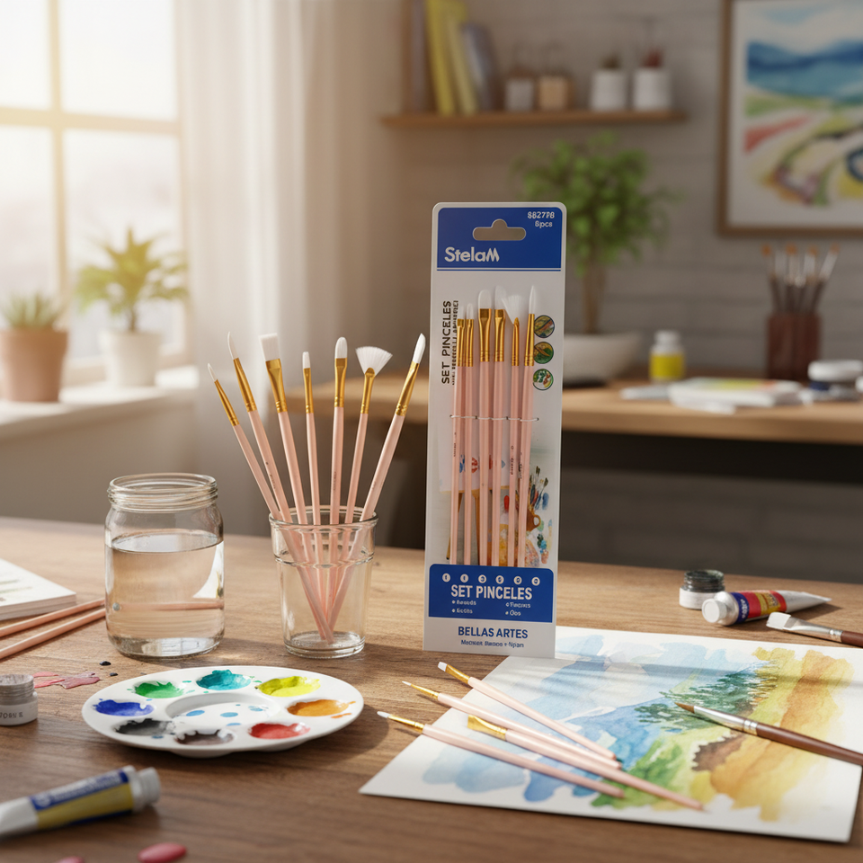 Set di pennelli in Nylon 6 pezzi per pittura acrilica ad acquerello di varie dimensioni capelli piatti bianco legno legno bianco albero di plastica