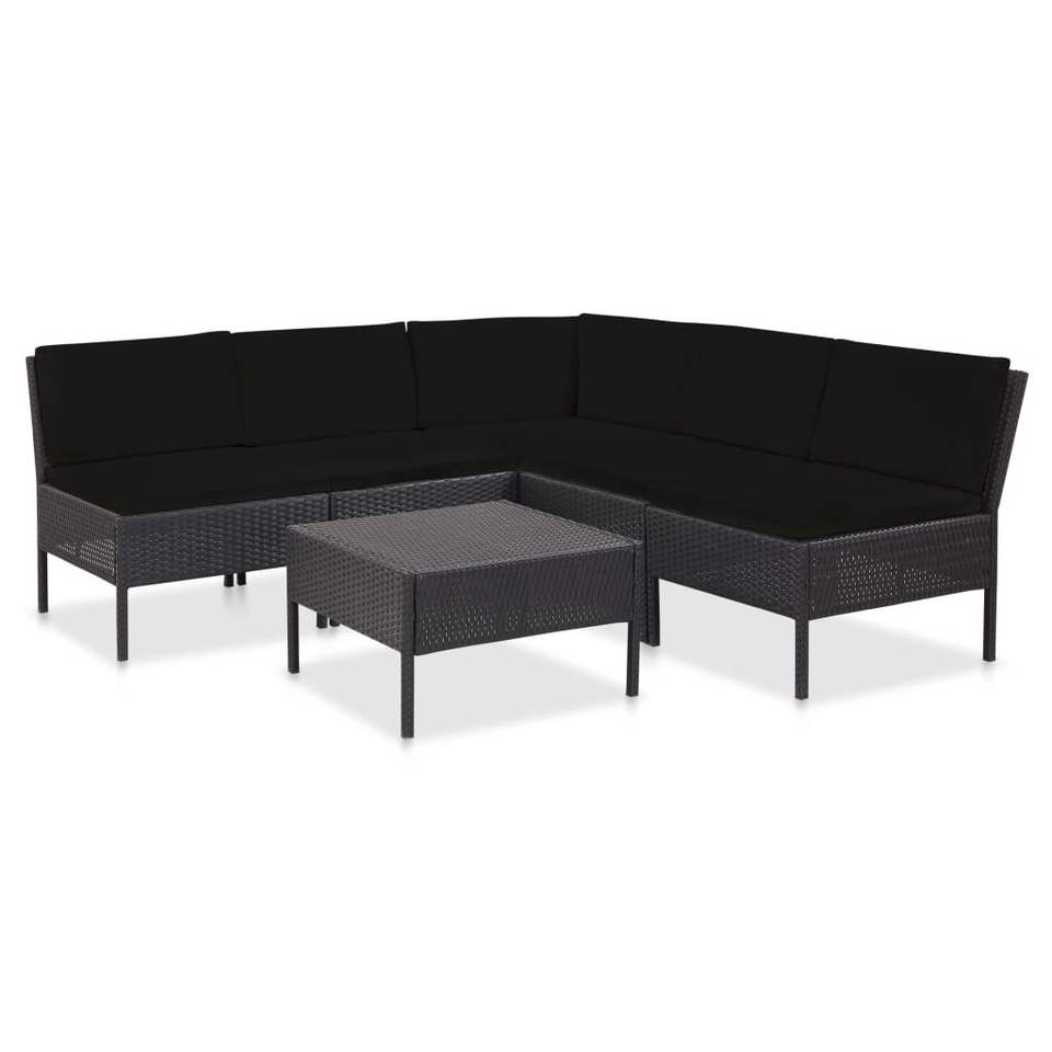 Set salotto in 6 pezzi in Poly Rattan nero con cuscini mobili da esterno