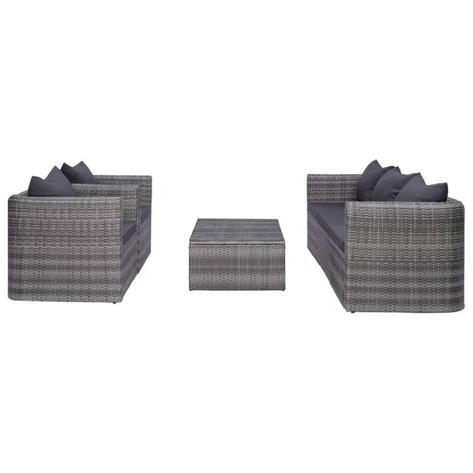 Divano da 6 pezzi in Poly Rattan grigio con cuscini e cuscini collezione di mobili da esterno