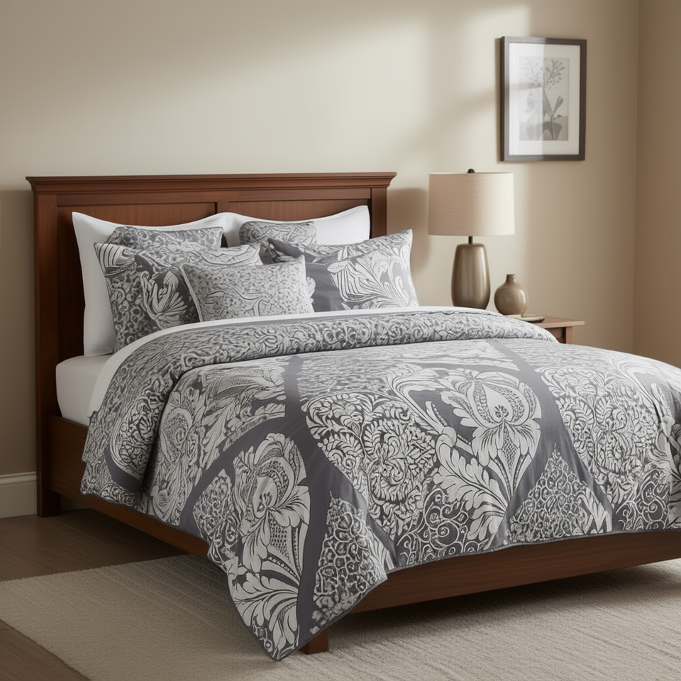 Printed Duvet Cover Set 6 Piece Classic Pattern Home Bedding