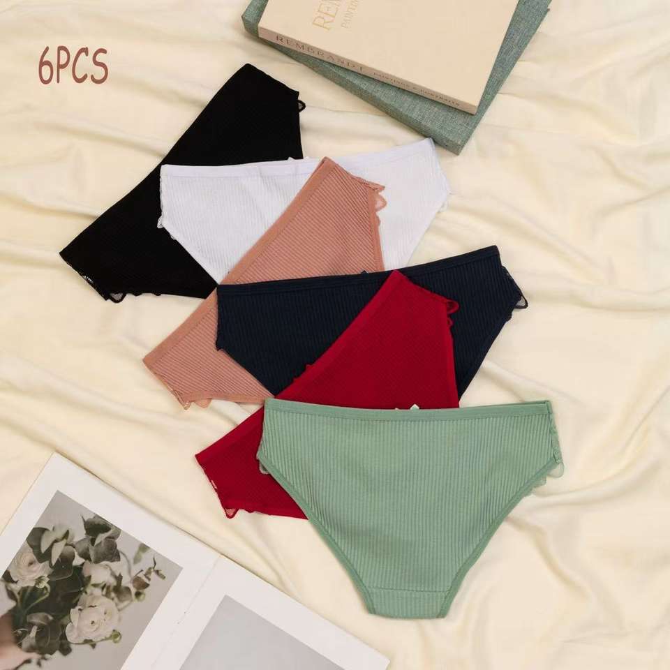 Set da 6 Pezzi Taglia Americana Disponibile Mutandine in Cotone Costine Slip Bikini da Donna in Cotone Confezione Mutandine Costine con Pizzo