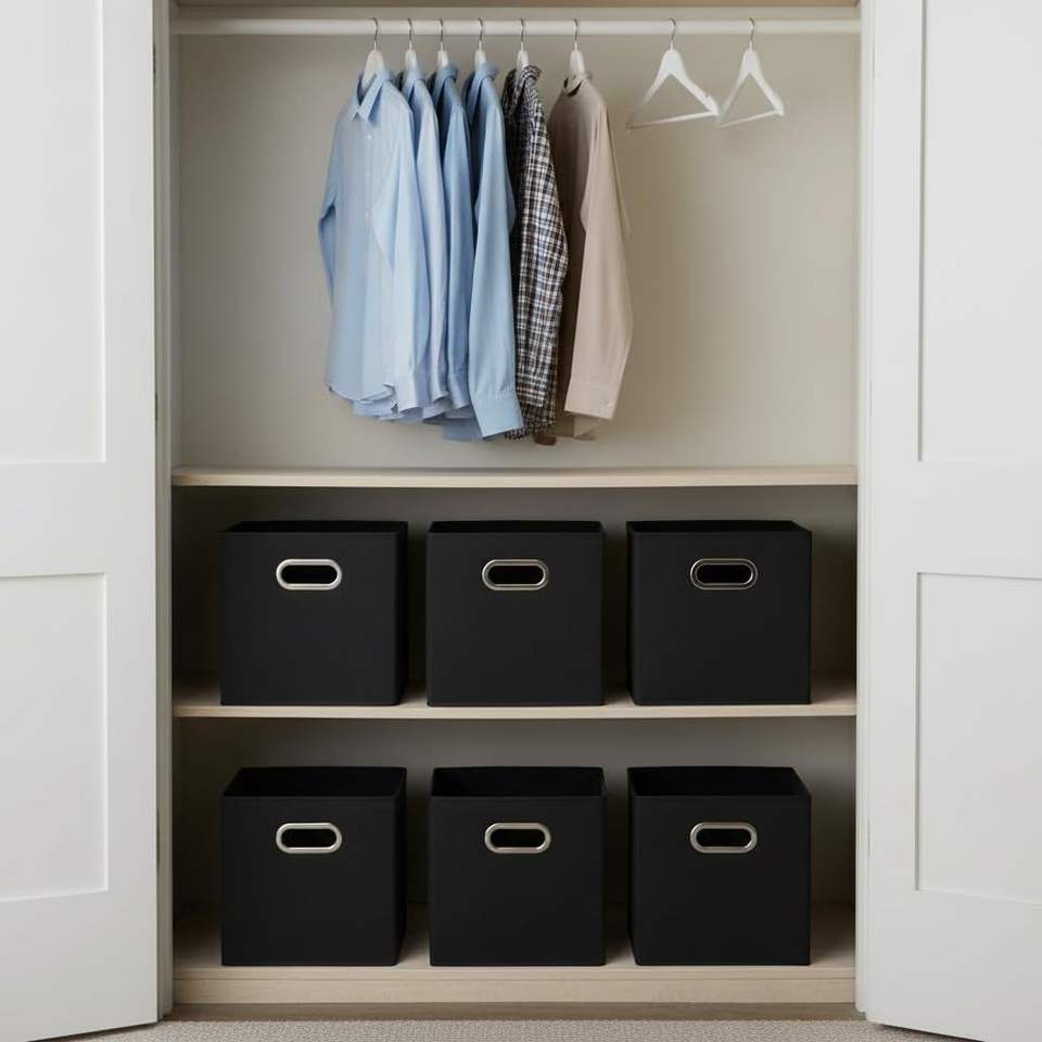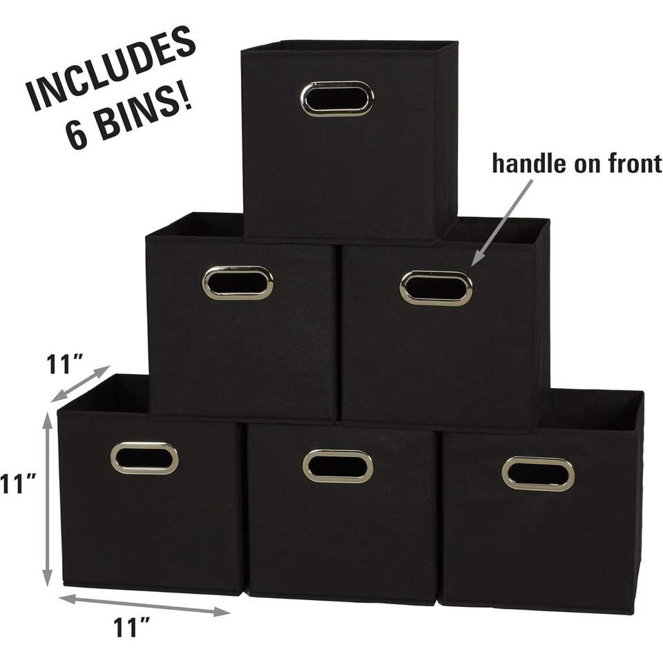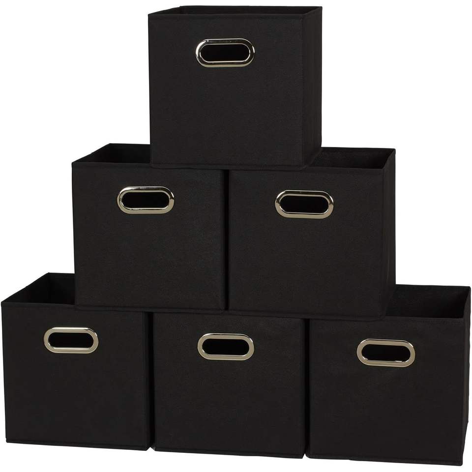 Set di 6 Contenitori Pieghevoli in Tessuto Resistente con Lati in Truciolato e Maniglia Frontale, Sistema di Contenitori Impilabili
