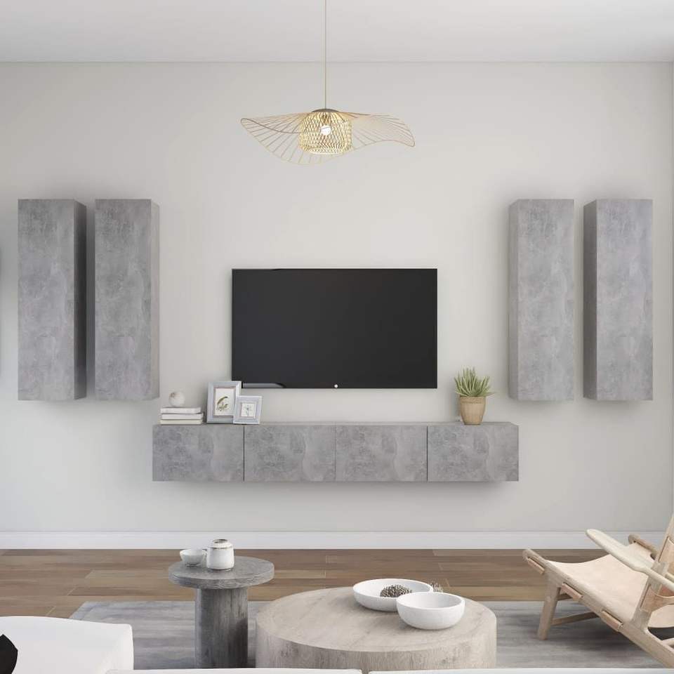 6 pezzo TV Set in legno grigio cemento ingegnerizzato resistente ed elegante