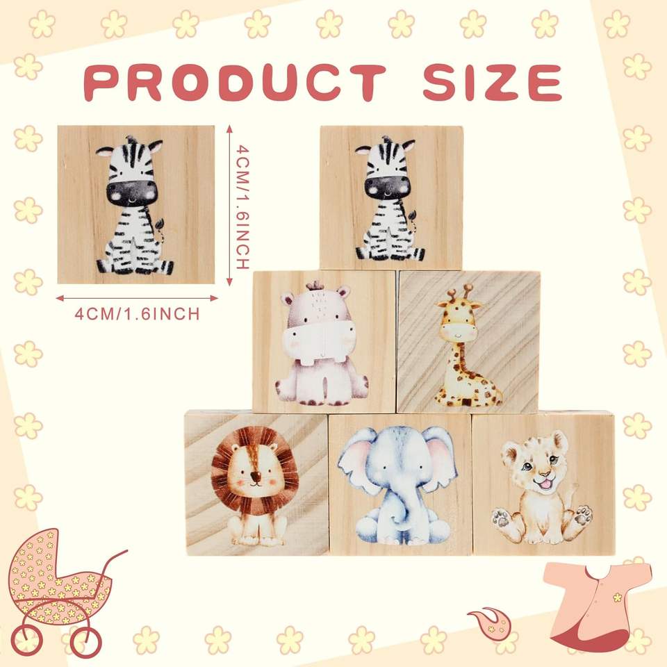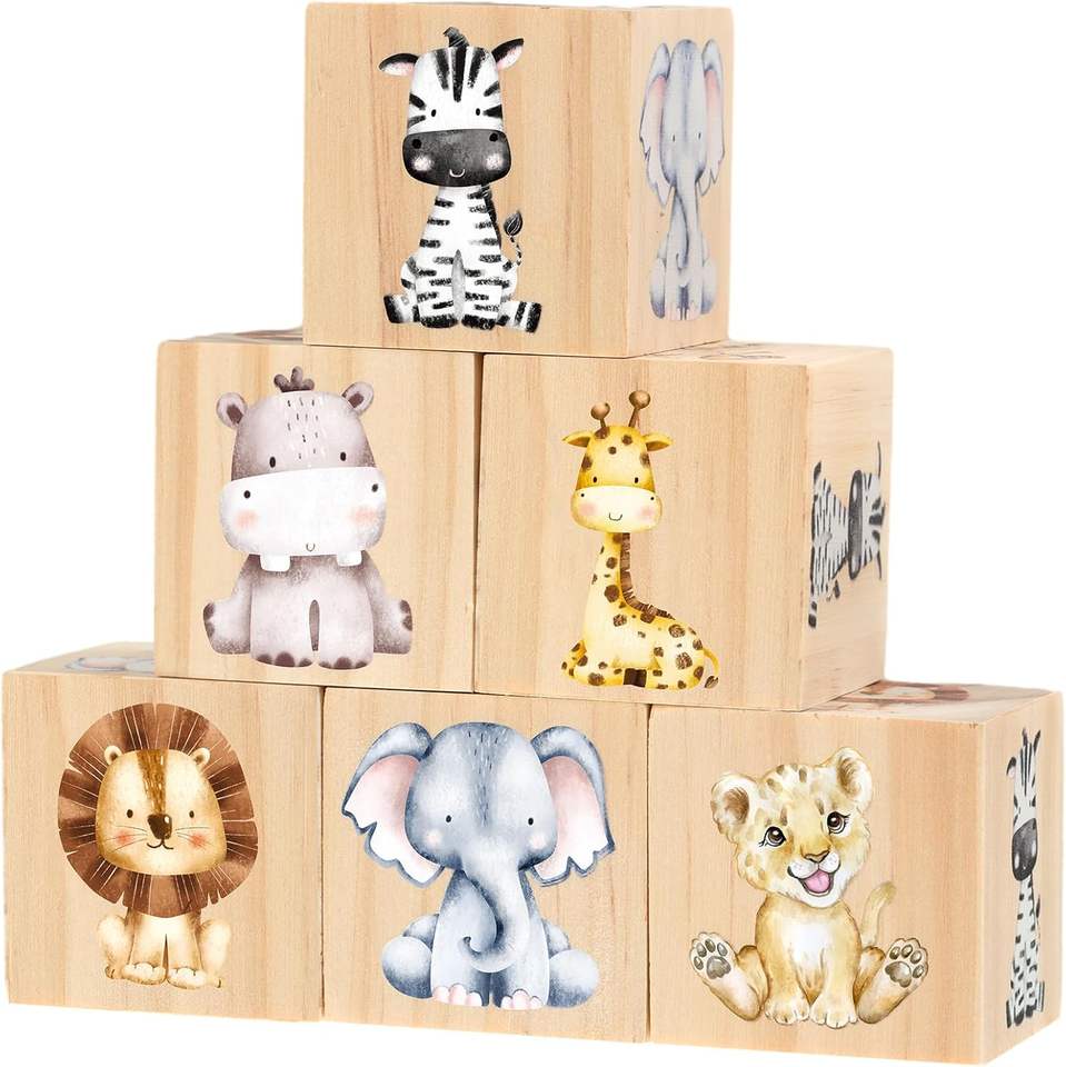 6-Piece Woodblock Nursery Decor for Girls and Boys Watercolor Shelf Decor with Engraving for Bedroom Playroom Gift Ideas