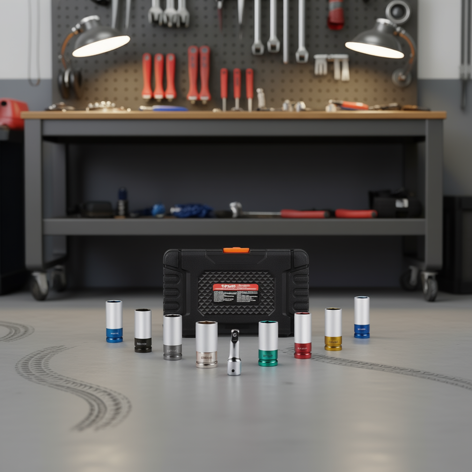 Set di chiavi a bussola profonde a 6 punti con attacco da 1/2 pollice, metriche e SAE, accessori per dadi ruota