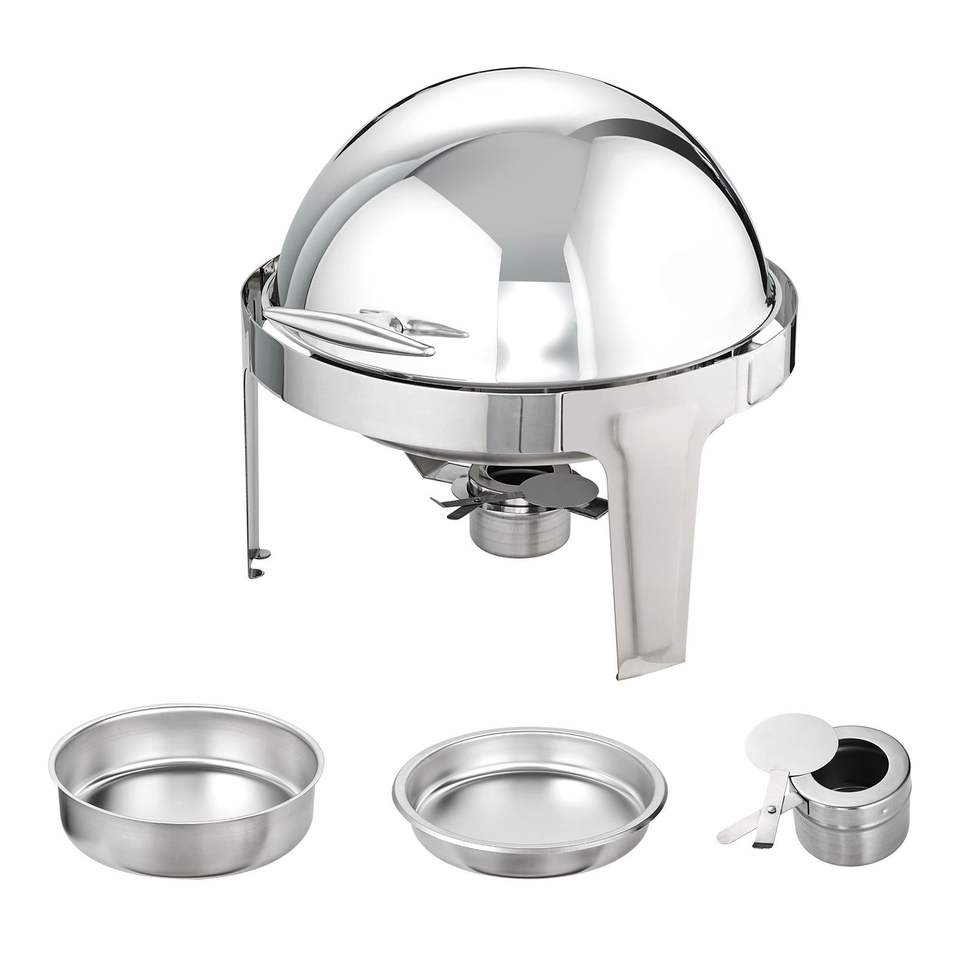 Set da Buffet con Scaldavivande in Acciaio Inox da 6 Qt con Coperchio Arrotolabile, Confezione da 2 con Pentole Grandi per Catering