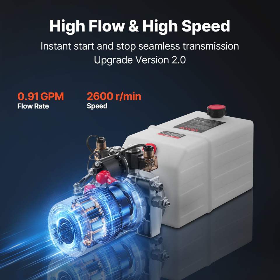 Centralina Idraulica 6 Quarti DC 12V a Doppio Effetto per Rimorchio Ribaltabile, Pompa 3200 PSI Pressione Massima, Attrezzatura per Movimentazione Materiali