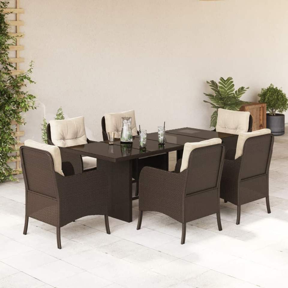 Set da Pranzo da Giardino per 6 Persone in Polyrattan Marrone, Arredamento da Esterno in Stile Contemporaneo