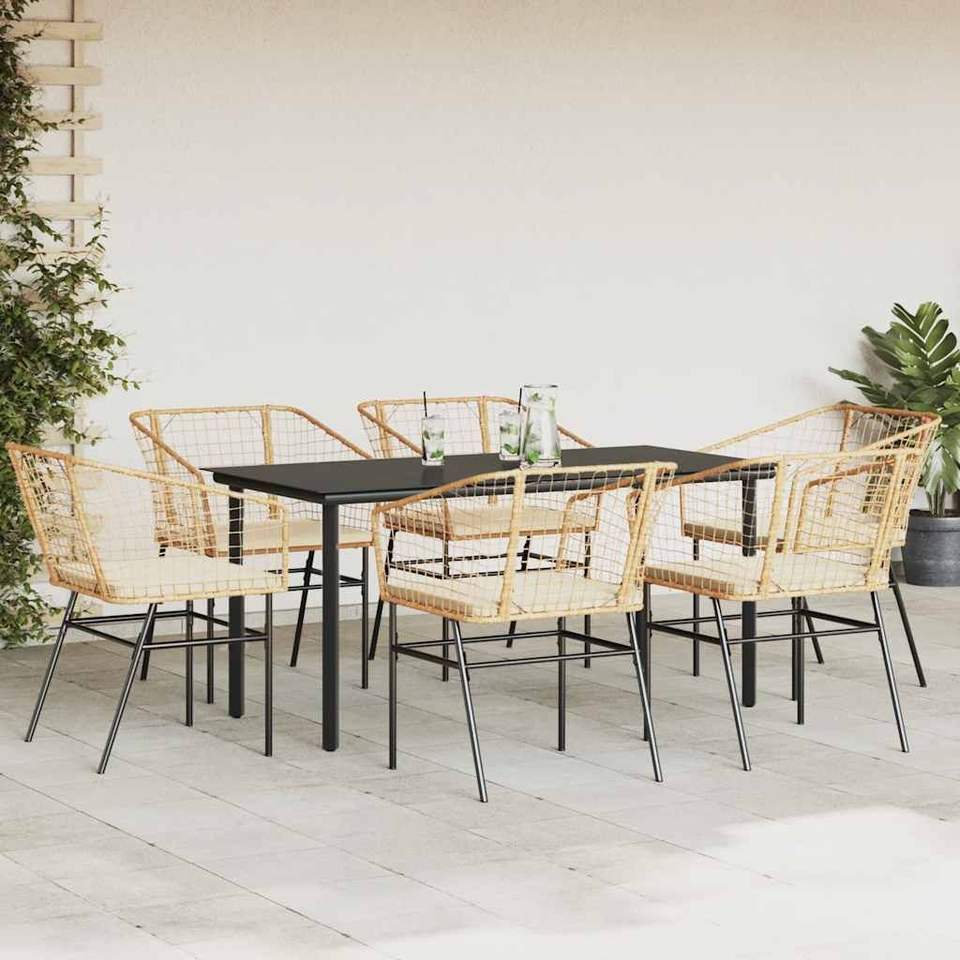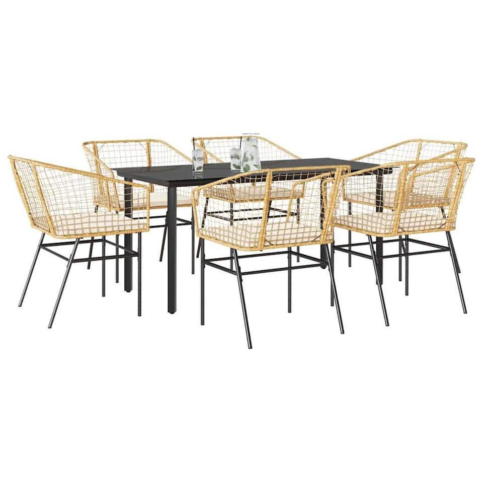 Set da Pranzo da Giardino per 6 Persone in Polyrattan Marrone con Struttura in Acciaio, Arredamento da Esterno dal Design Contemporaneo