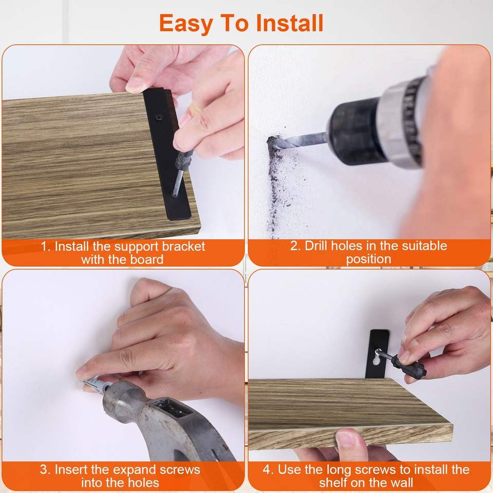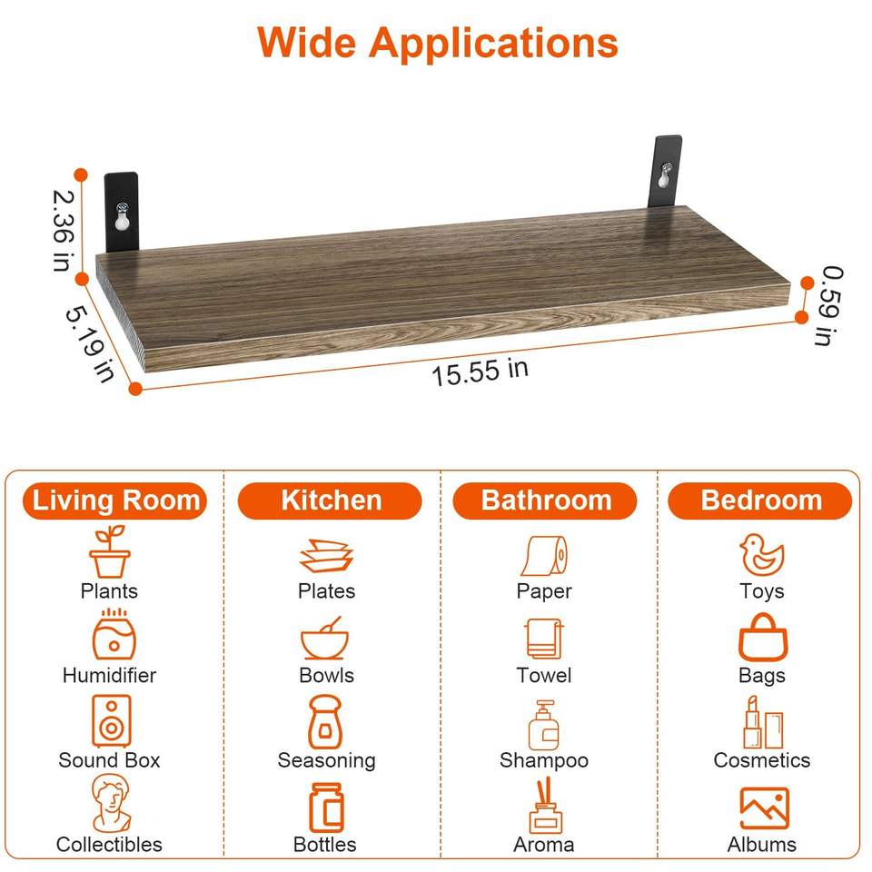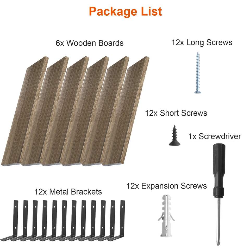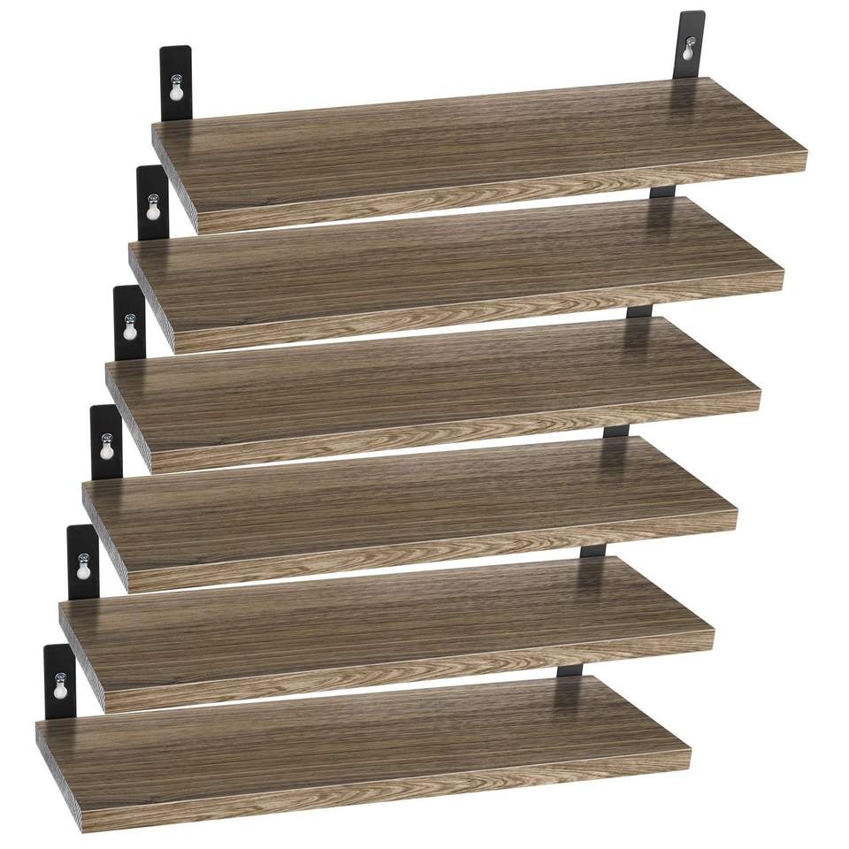 6 Set di Mensole Galleggianti in Legno da 15,55x5,19 Pollici, Montaggio a Parete con Staffa Metallica, Scaffale Espositivo Galleggiante, Organizzatore da Parete
