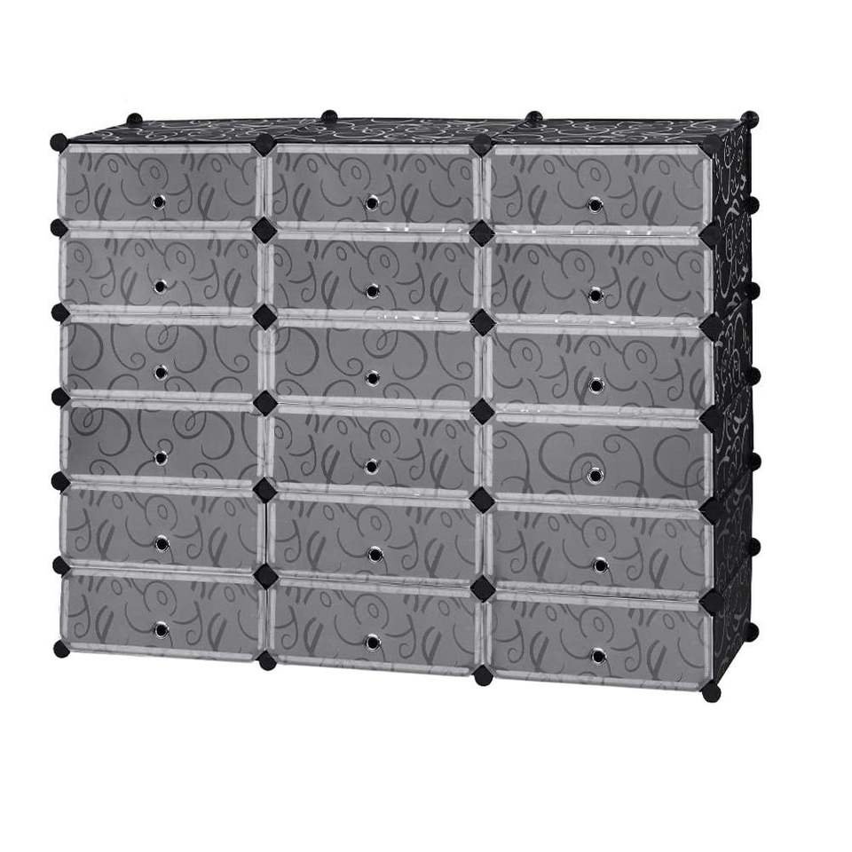 Scarpiera a 6 livelli con 18 cubi, mobiletto organizer in plastica con ante per scatole e contenitori per scarpe