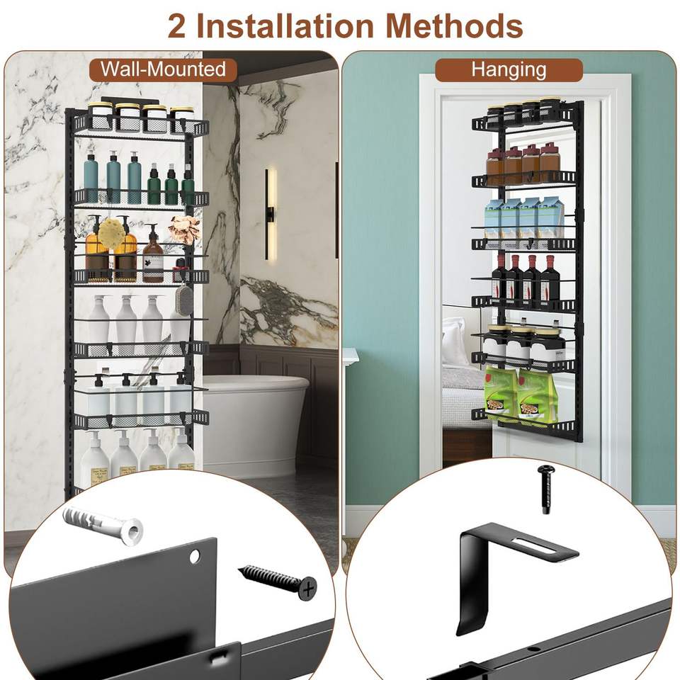 Organizzatore per Dispensa a 6 Ripiani in Acciaio al Carbonio da Appendere alla Porta, Capacità di Carico 110 LBS, Facile Installazione, Scaffale Portaoggetti