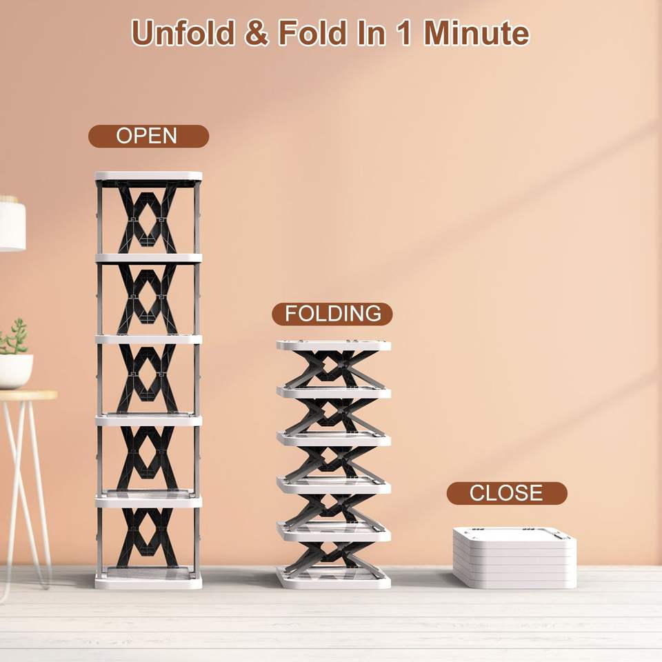 Scarpiera Pieghevole a 6 Livelli, Verticale, Salvaspazio, Autoportante per Spazi Ristretti