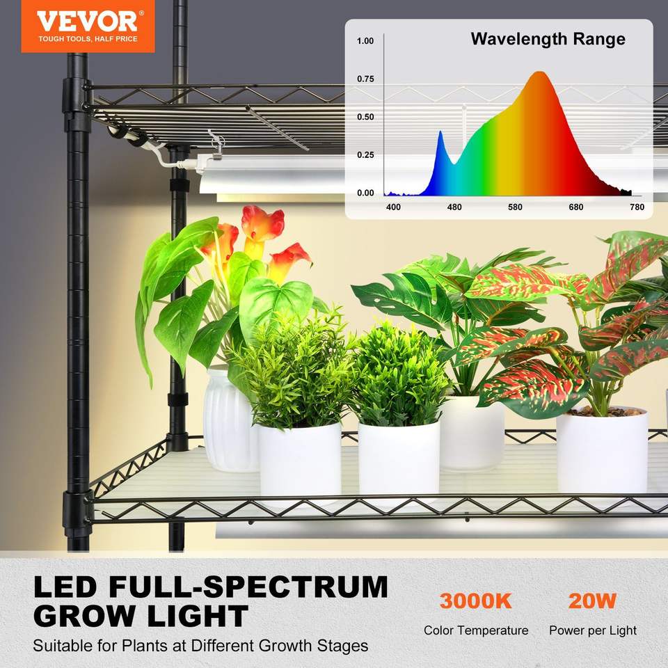 Scaffale per Piante a 6 Livelli Grande e Alto con Luce di Crescita a Spettro Completo 3000K 200W per Interni