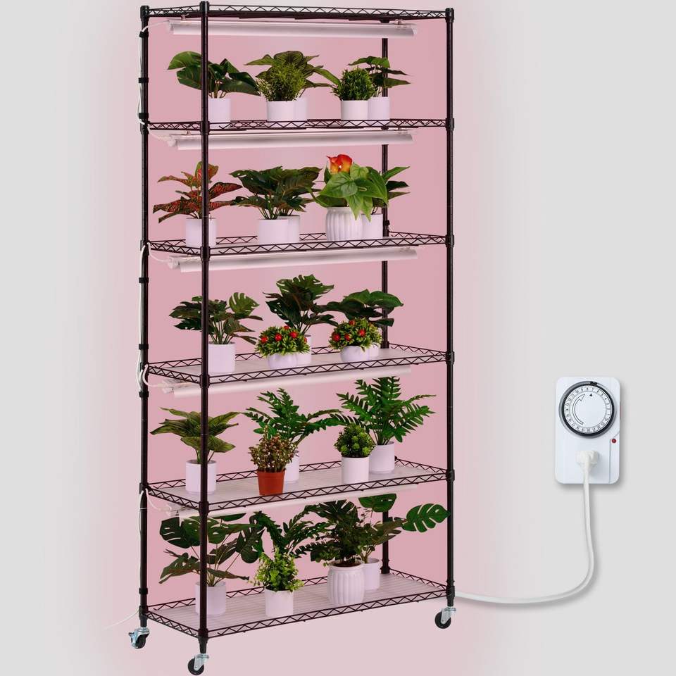 Scaffale per Piante a 6 Livelli con Luce LED a Spettro Completo da 150W per Coltivazione Indoor con Timer