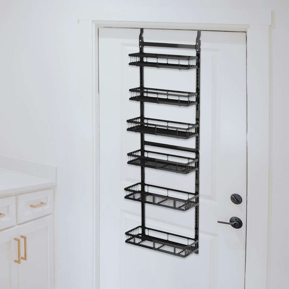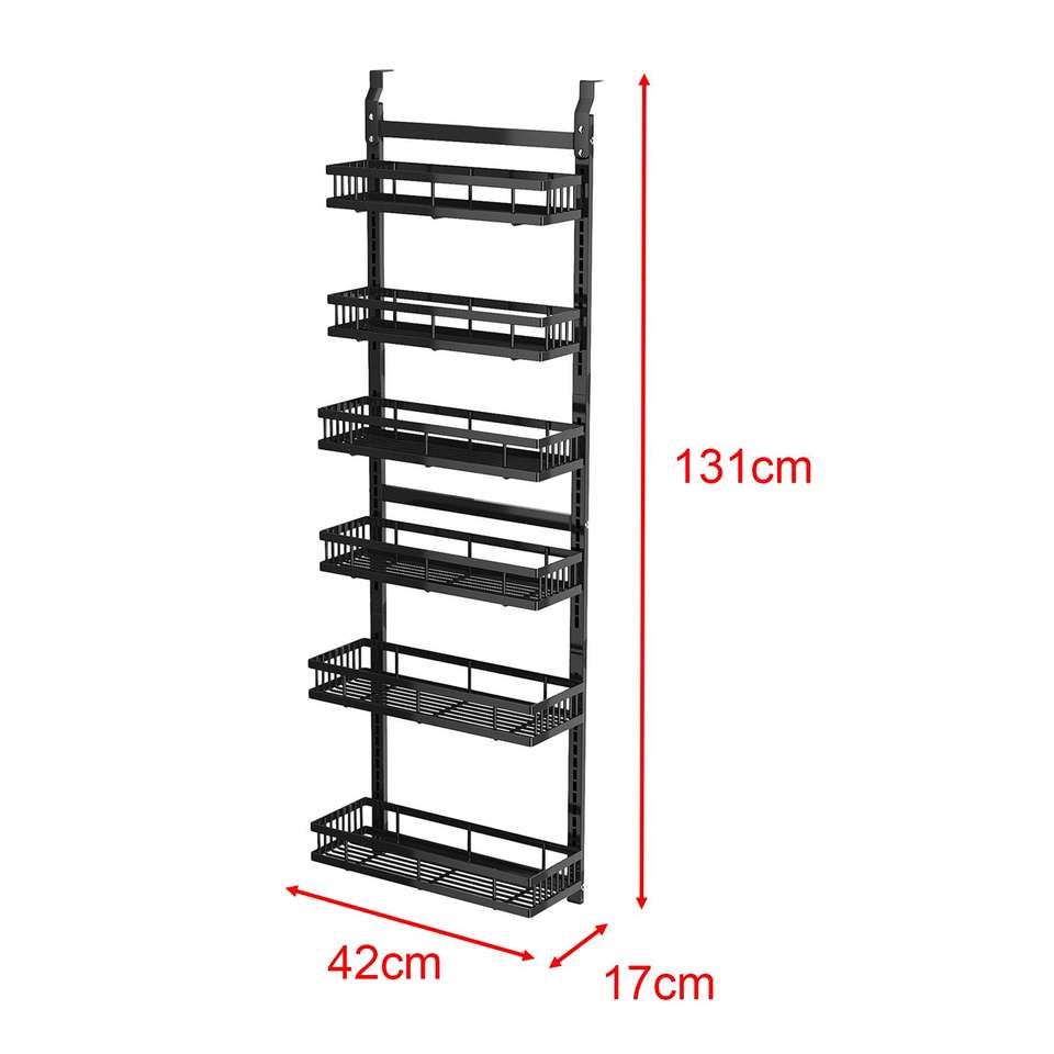 6-Tier Over-the-Door Pantry Organizer with Hanging Spice Rack Storage Metal for Food Use in Bedroom Bathroom Living Room