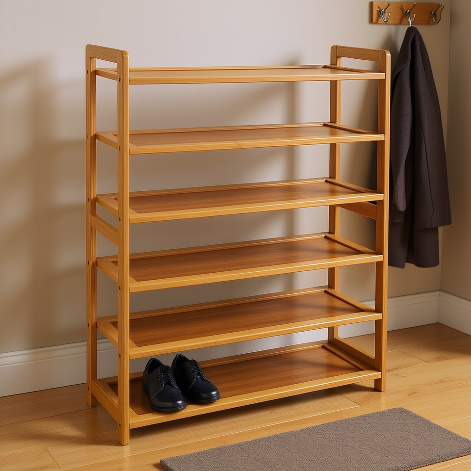 Scarpiera a 6 livelli in legno per l'organizzazione dell'ingresso, mobile per la casa