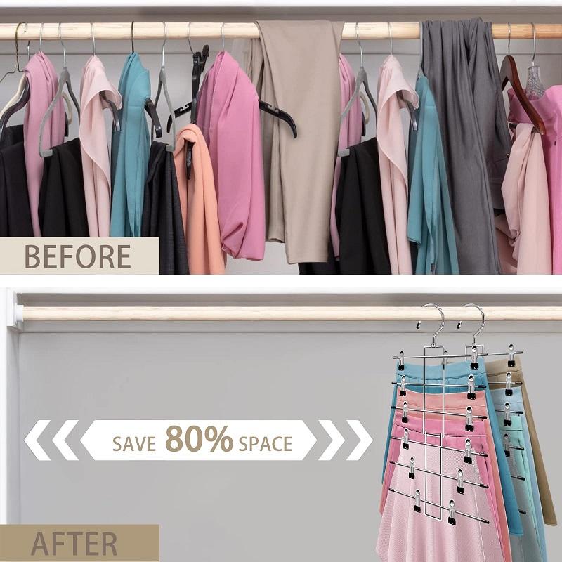 Gruccia Appendiabiti Salvaspazio Pieghevole in Metallo a 6 Livelli con Ganci per Armadio per Cappotti Gonne e Pantaloni