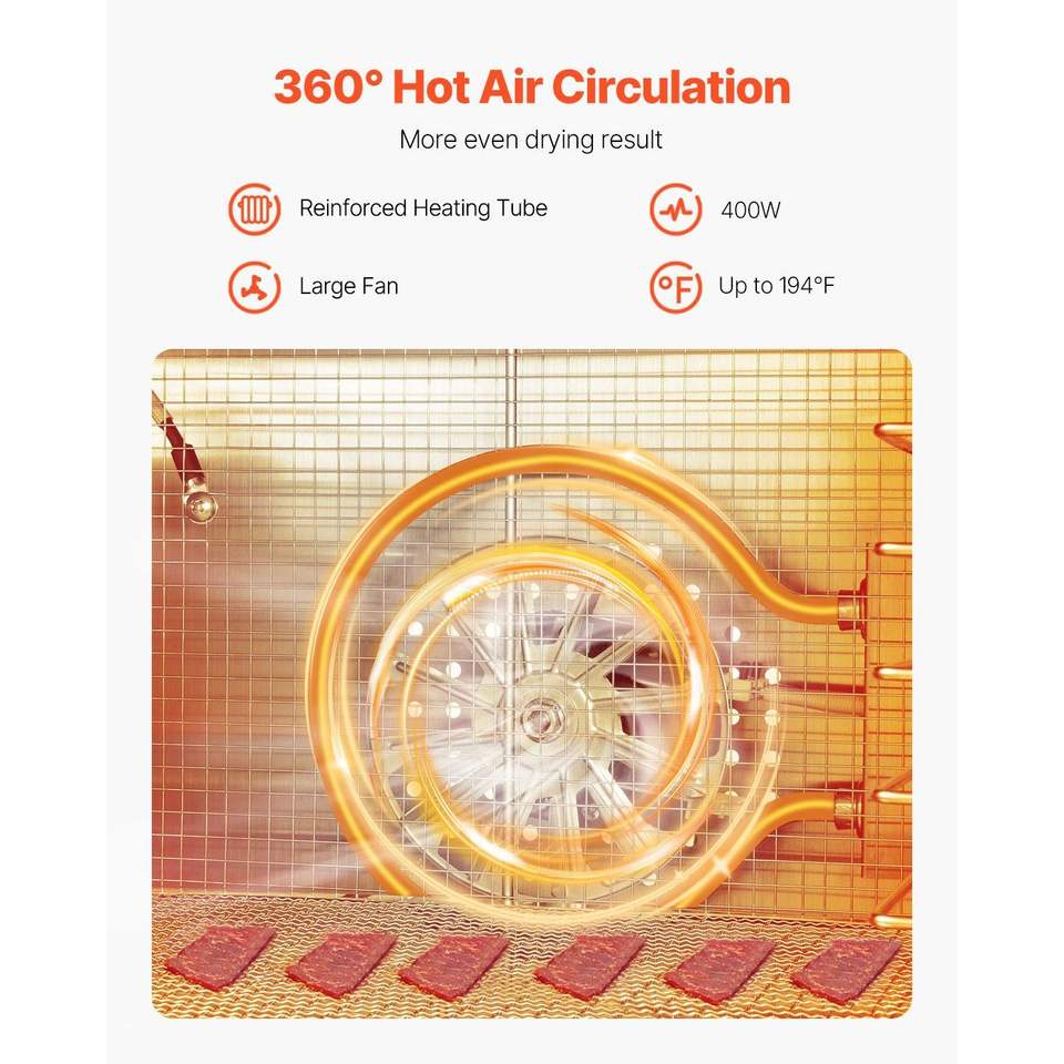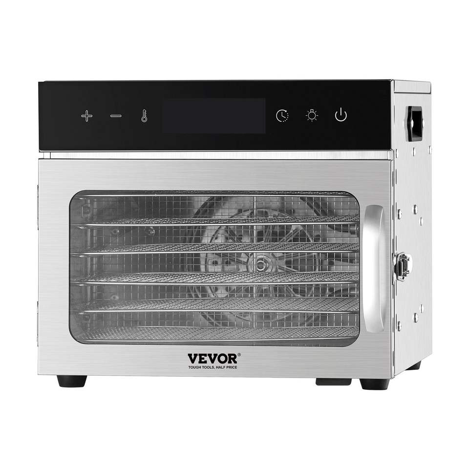 Essiccatore Alimentare Elettrico a 6 Vassoi in Acciaio Inossidabile 400W con Temperatura Regolabile, Timer 24 Ore, Compatibile con Congelatore