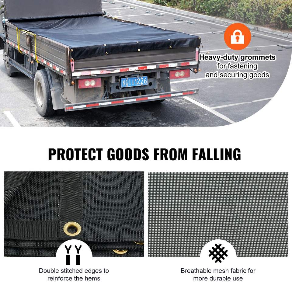 Telo in rete per camion ribaltabile 6 x 14 piedi, resistente, nero, rivestito in PVC, con occhielli in ottone a doppia tasca da 5,5 pollici e 18 once, accessorio per il controllo del carico