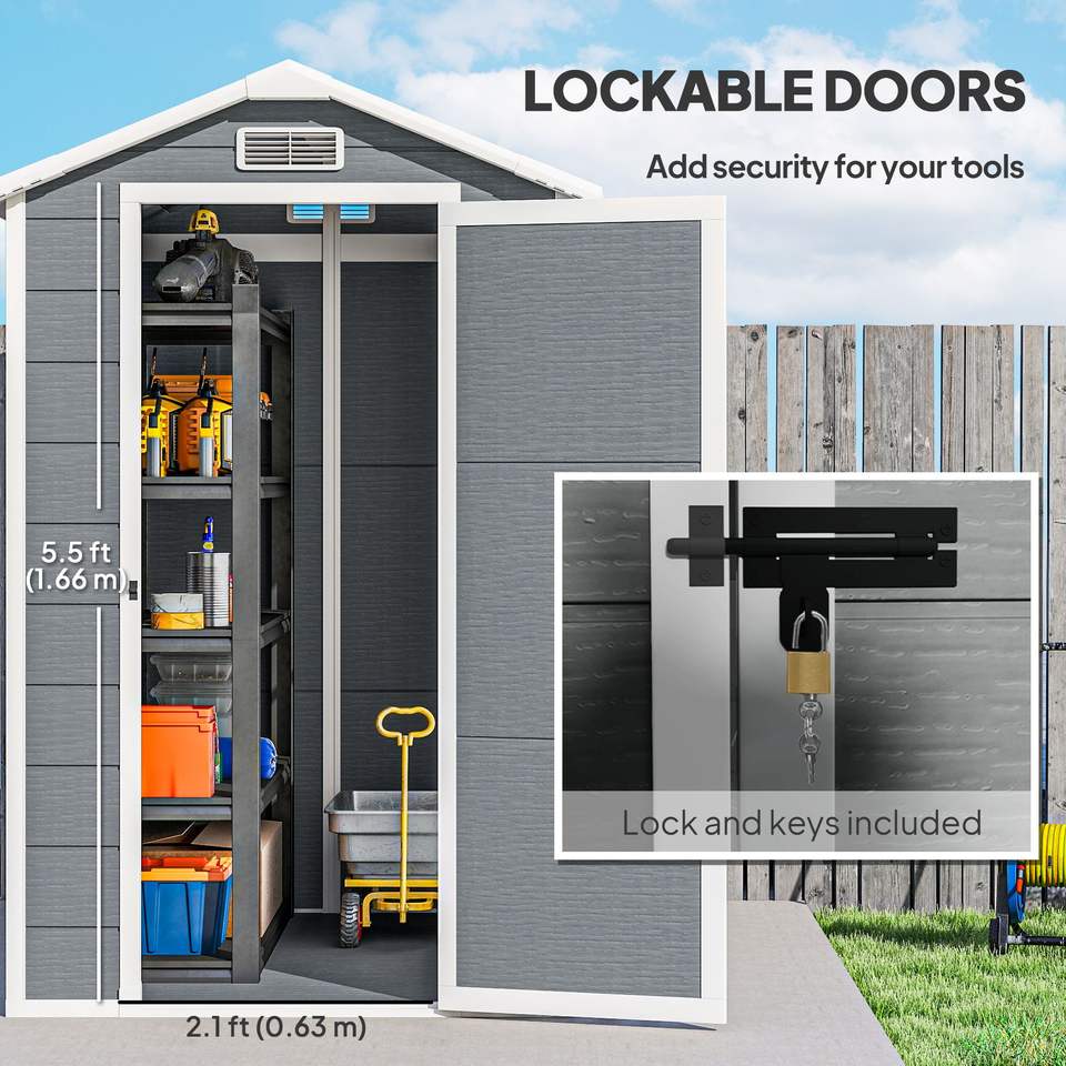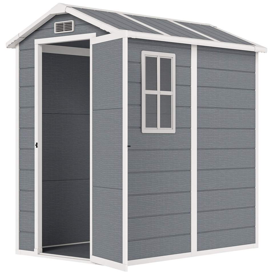 Casetta da Giardino 6x4 Grigia con Porta Lucchettabile, Prese d'Aria e Finestra sul Pavimento, in Plastica Resistente per Deposito Esterno