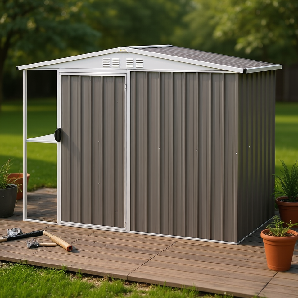 Casetta in Metallo 6x4 Grigio Caldo per Esterni con Prese d'Aria e Porta Lucchettabile per Giardino e Patio