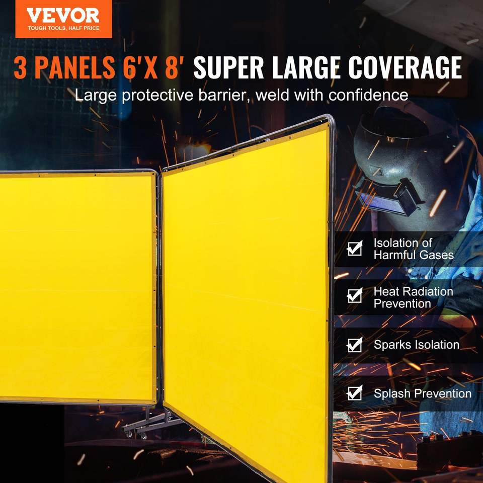 Schermo per saldatura in vinile ignifugo a 3 pannelli 6x8 con 12 schermi a tendina girevoli per protezione saldatura