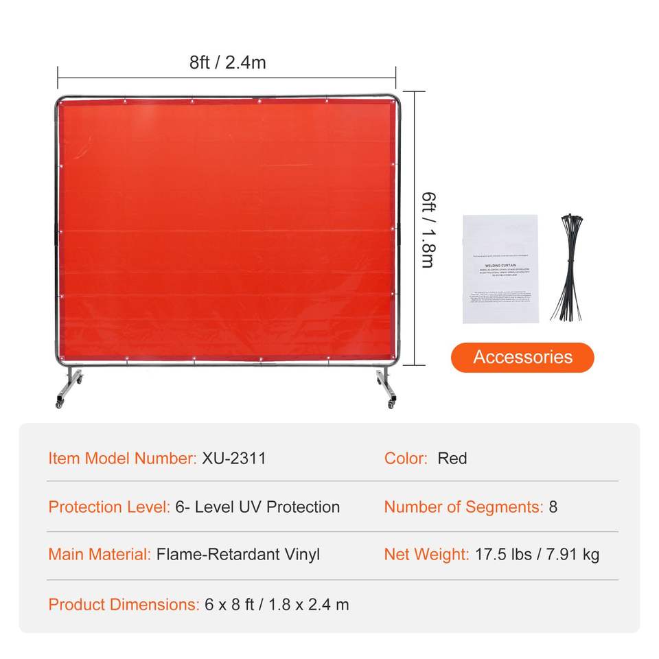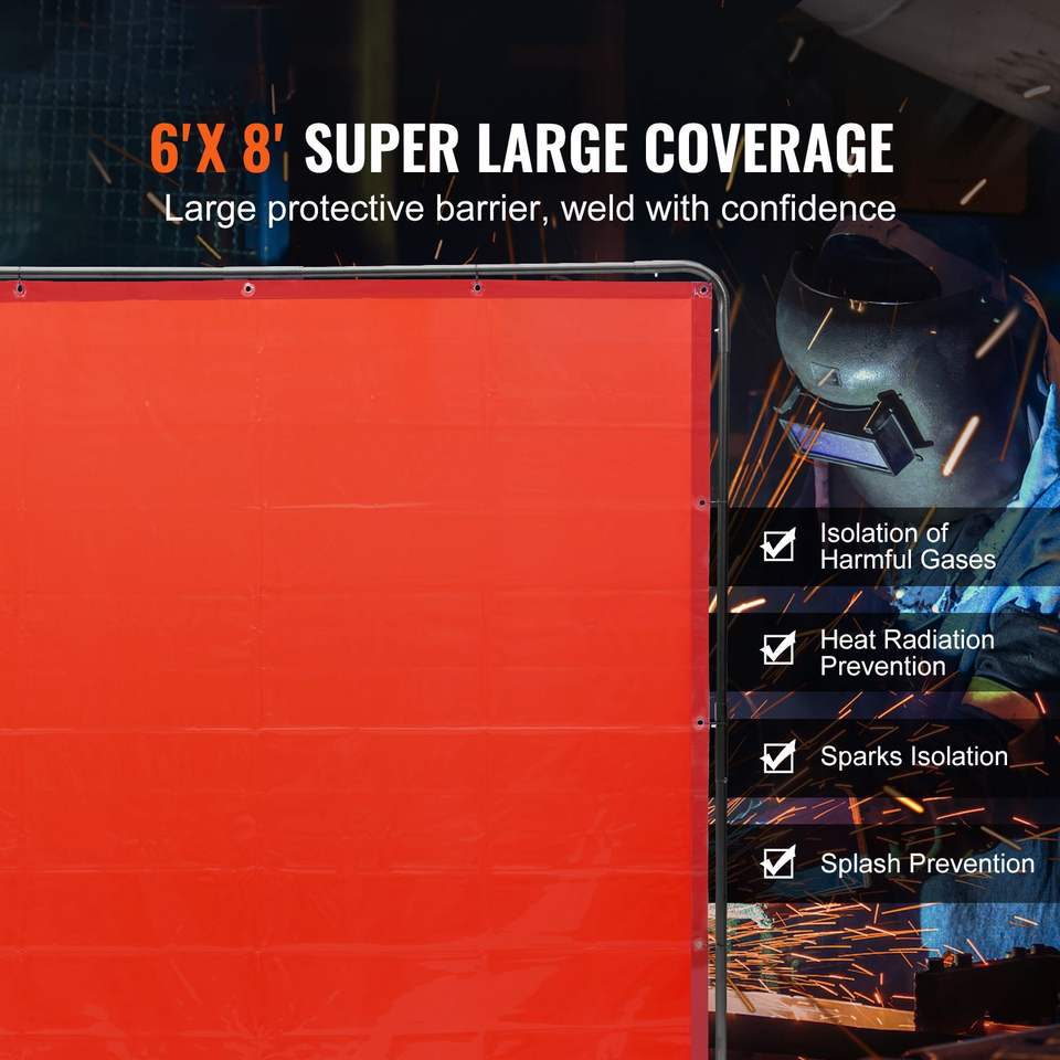 Schermo di Protezione per Saldatura in Vinile Ignifugo 6 X 8 con 4 Ruote Girevoli, 2 Pezzi di Protezione per Saldatura in Vinile Ignifugo