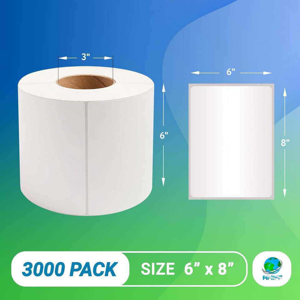 Confezione di etichette a trasferimento termico bianche da 6X8 pollici 3000 etichettatura di etichette industriali perforate autoadesive da 3 pollici