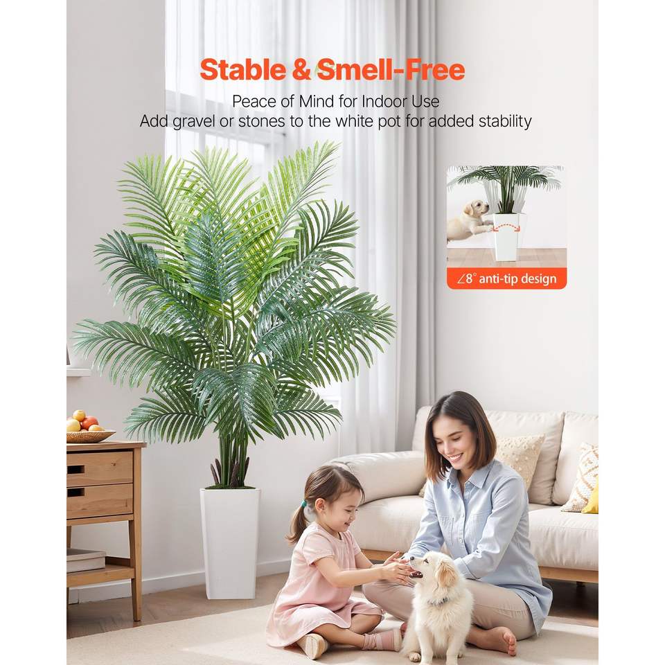 Palma Areca Artificiale Bianca Alta 1,8 m con Vaso, Piante Tropicali Finte Grandi in Seta per Decorazioni Interne