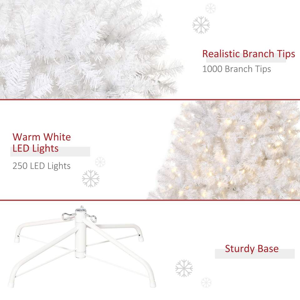 Albero di Natale Artificiale Douglas Fir Alto 1,8 m con 250 Luci LED Bianco Caldo, Rami Realistici, Preilluminato con Luci Natalizie da 3 m
