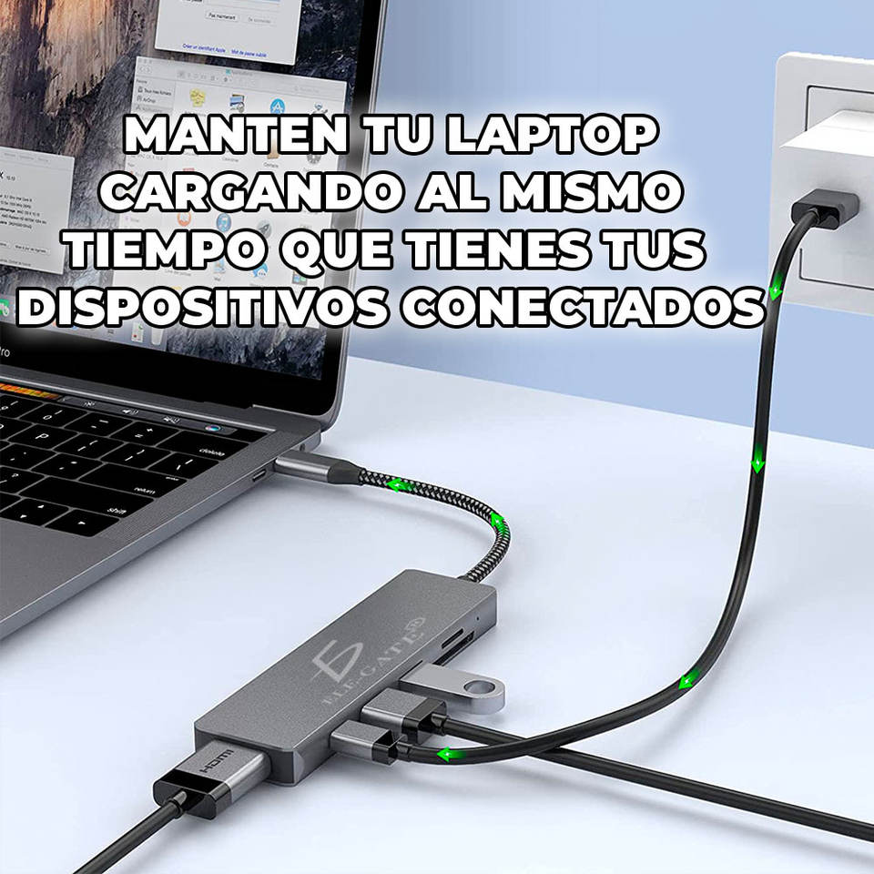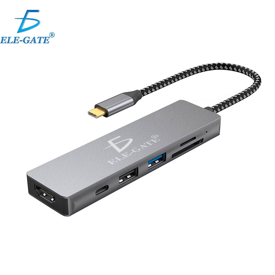Hub Adattatore 6-in-1 in Lega di Alluminio con USB 3.0 Tipo-C, Trasferimento Dati ad Alta Velocità 5Gbps, HDMI 4K 60Hz, Ethernet e Interfaccia SD