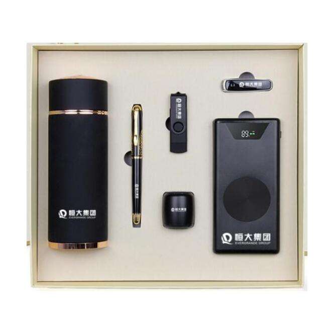 Set Regalo Aziendale di Lusso 6 in 1, Set Regalo Promozionale Aziendale 2019 con Altoparlante, Tazza Termica, Caricatore Wireless, Power Bank