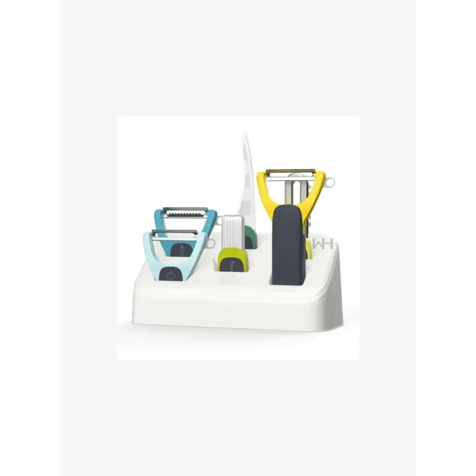 Set di Pelapatate Elettrico 6-in-1 Intercambiabile, Durevole e Versatile, in Plastica Multicolore, Lavabile in Lavastoviglie per Esigenze Culinare