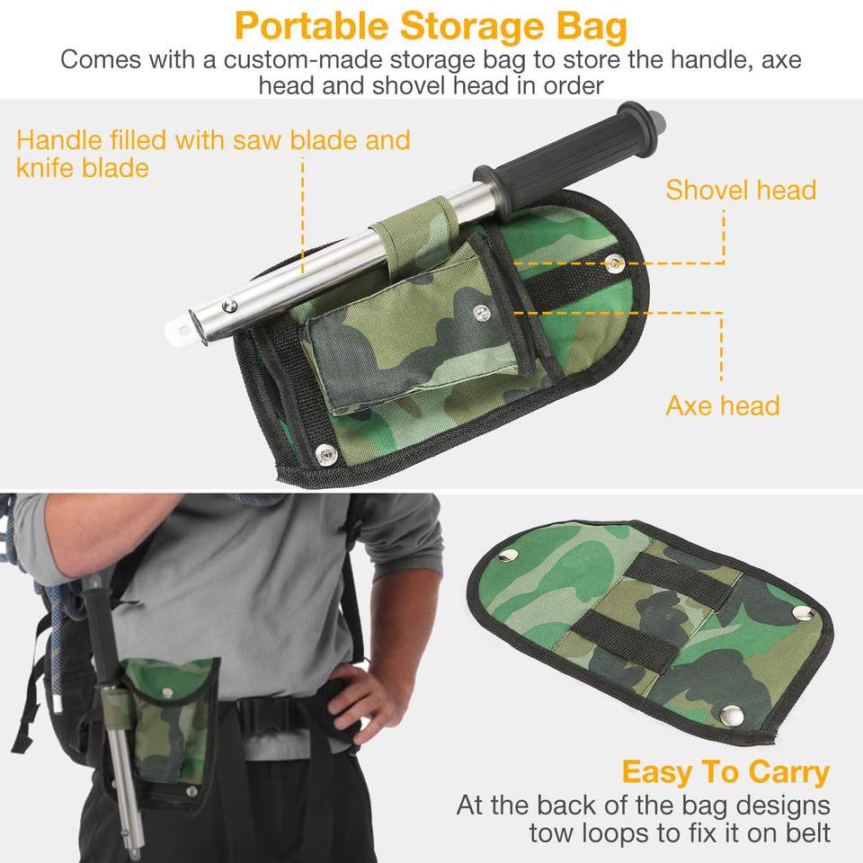Kit di Sopravvivenza Multiuso 6-in-1 per Campeggio con Custodia, Include Pala, Coltello, Ascia, Sega e Estrattore per Chiodi per l'Avventura