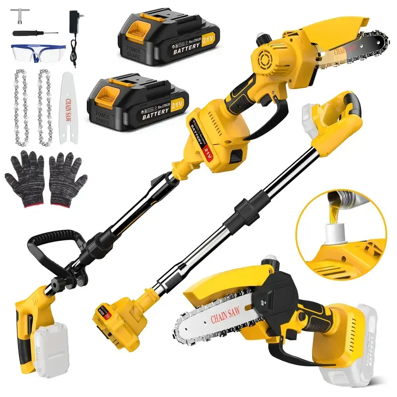 Sega a palo senza fili da 6 pollici e mini motosega 2 in 1 sega a palo rotante elettrica brushless per potatura di rami di alberi multi-angolo
