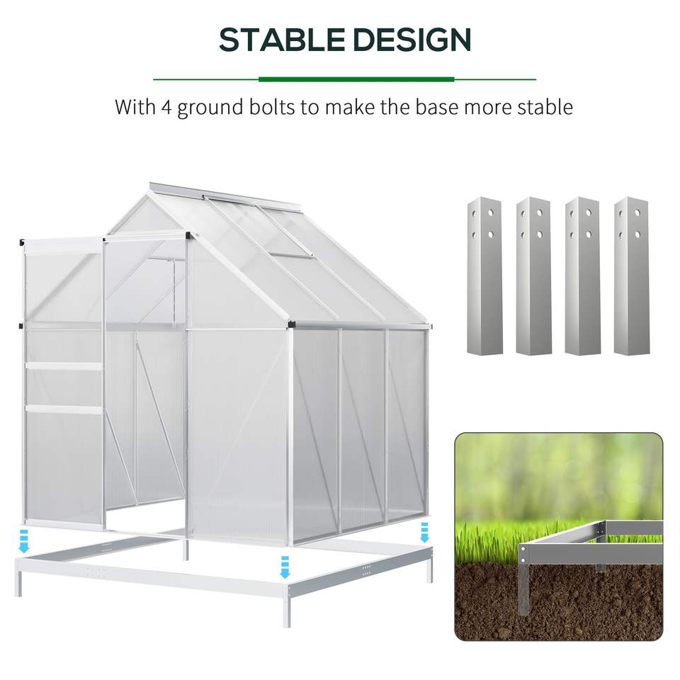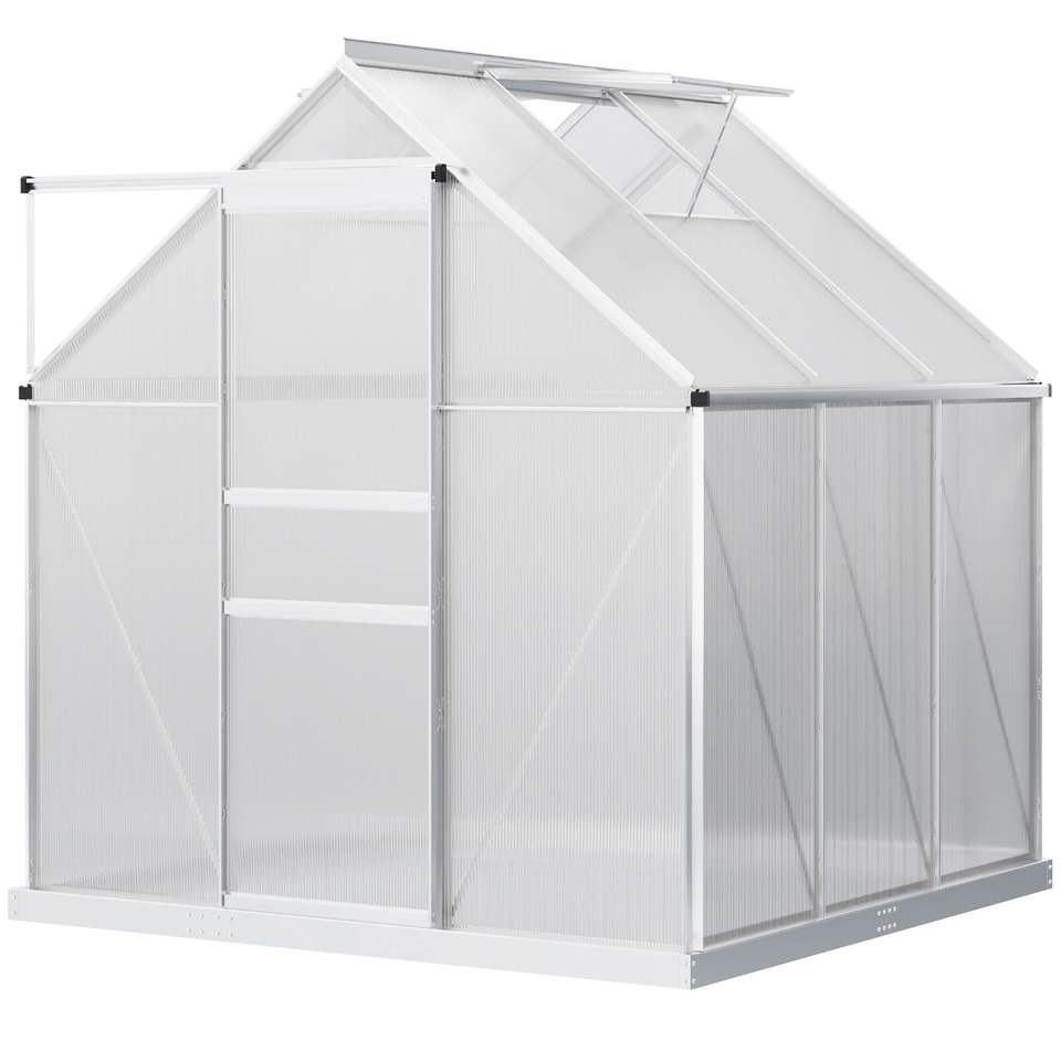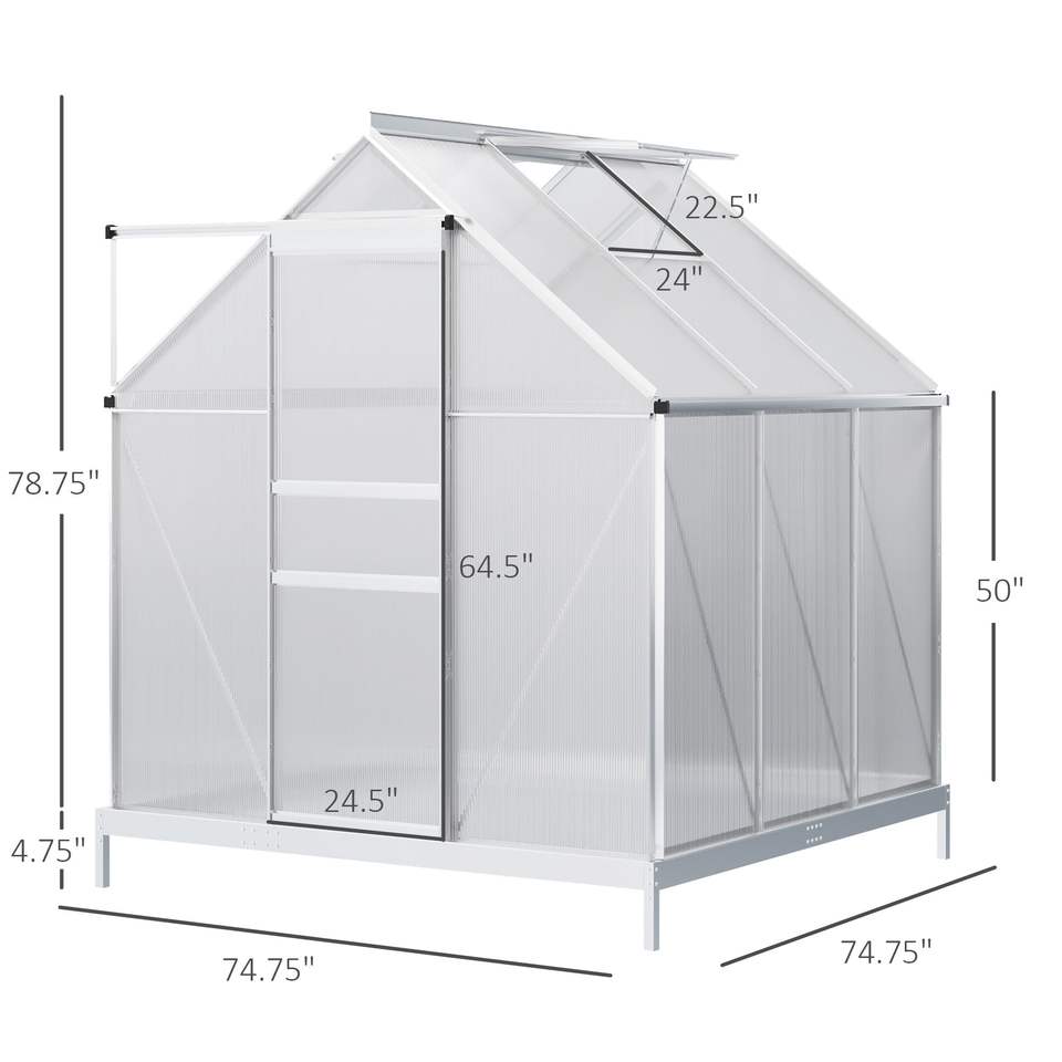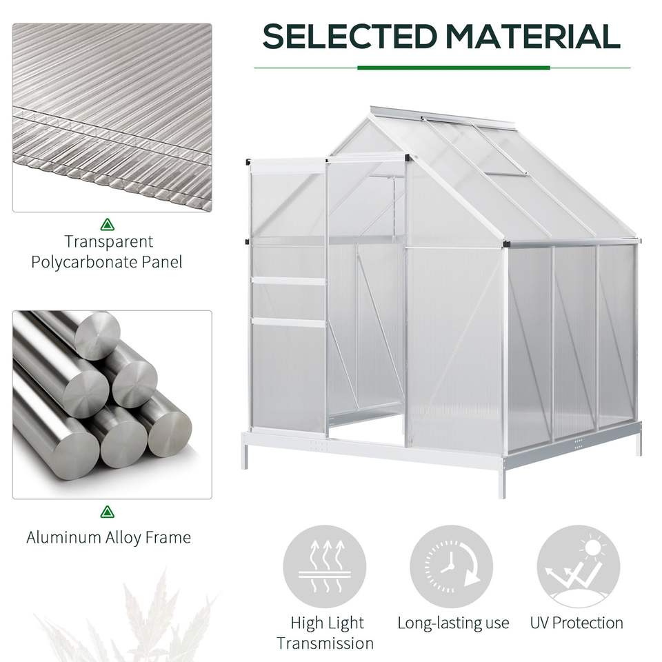 6'x6' Heavy-Duty Garden Greenhouse with Polycarbonate Adjustable Roof Vent & Silver Sliding Door Rain Gutter-Green