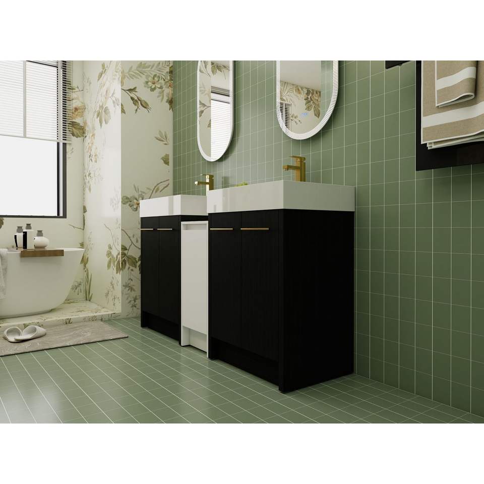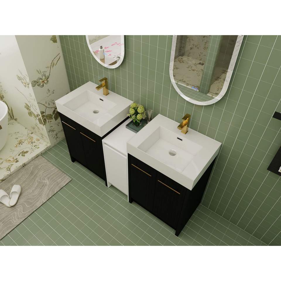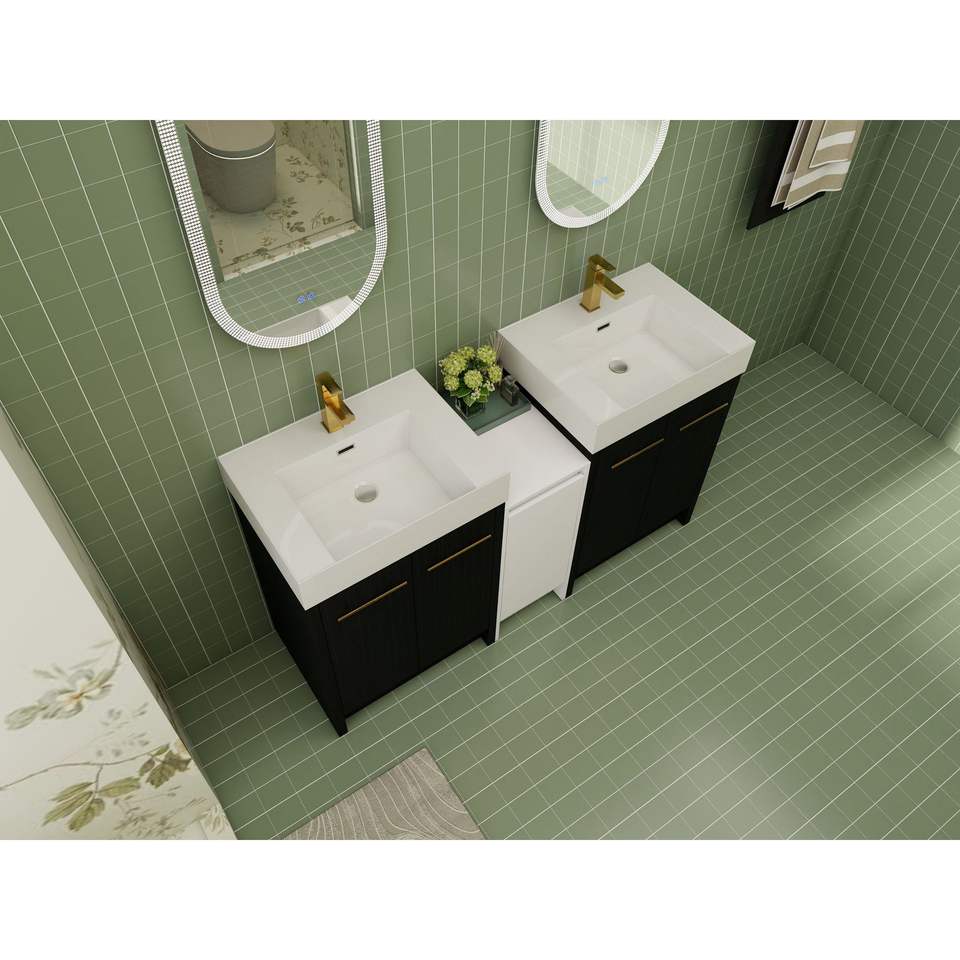 Mobile Bagno Freestanding da 60 Pollici con Lavabo in Resina, Armadietti Contenitori e Ante con Chiusura Ammortizzata 09224*2+0312 - Combinazione per Spazi Piccoli