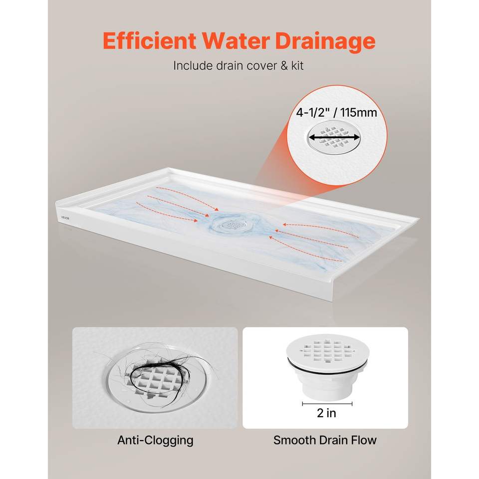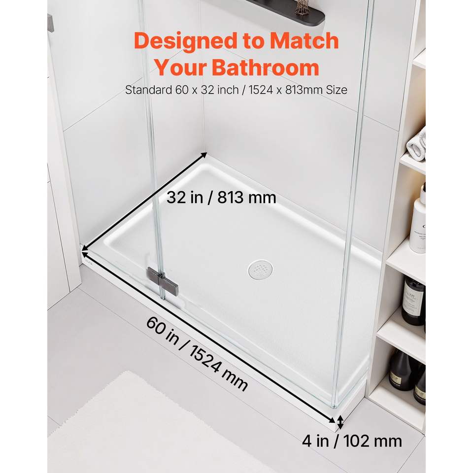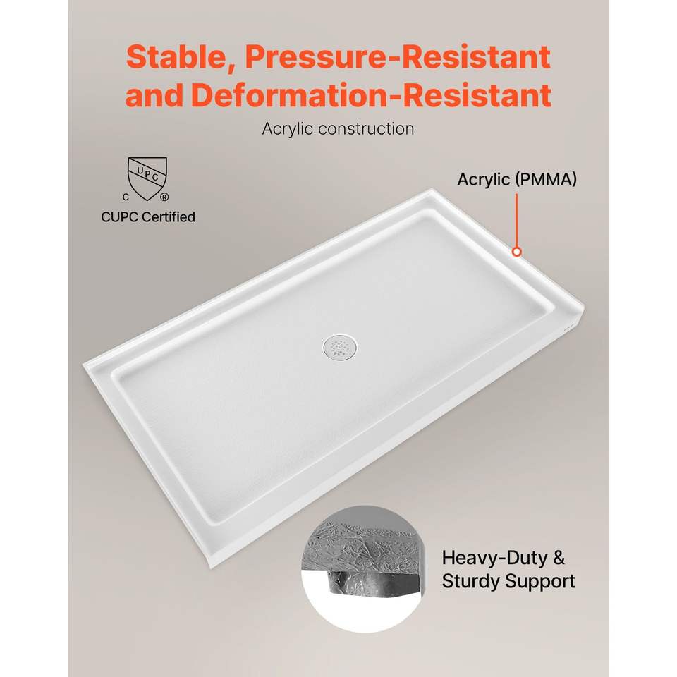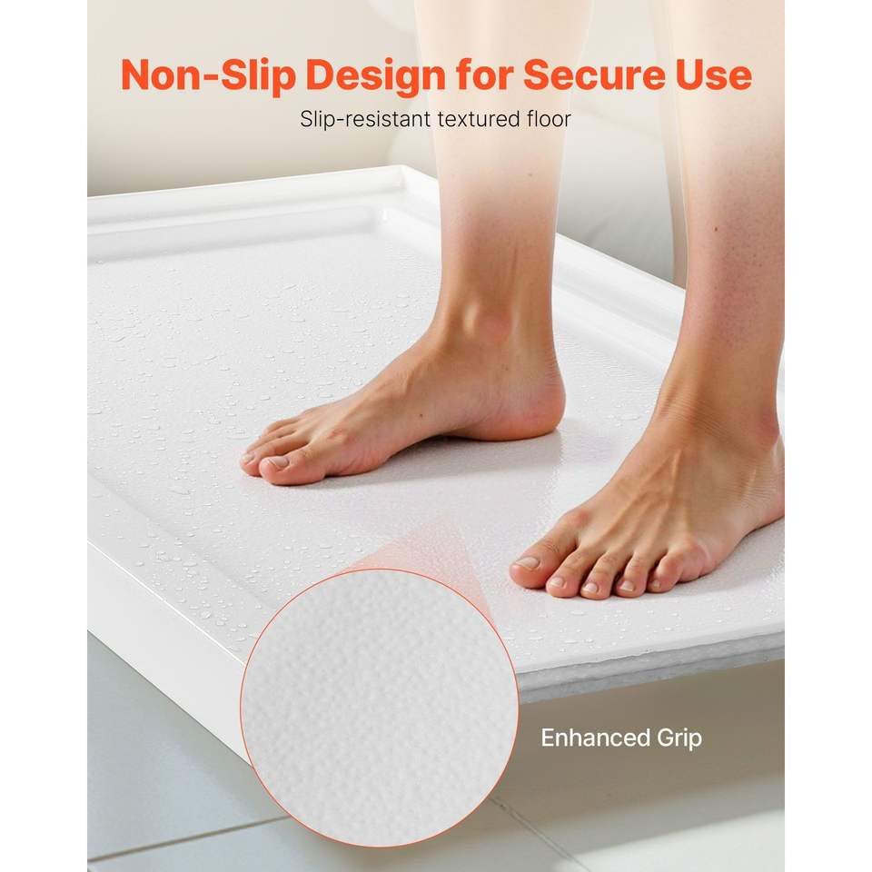 Piatto Doccia Rettangolare in Acrilico PVC Bianco 152x81 cm con Soglia Singola e Base Antiscivolo