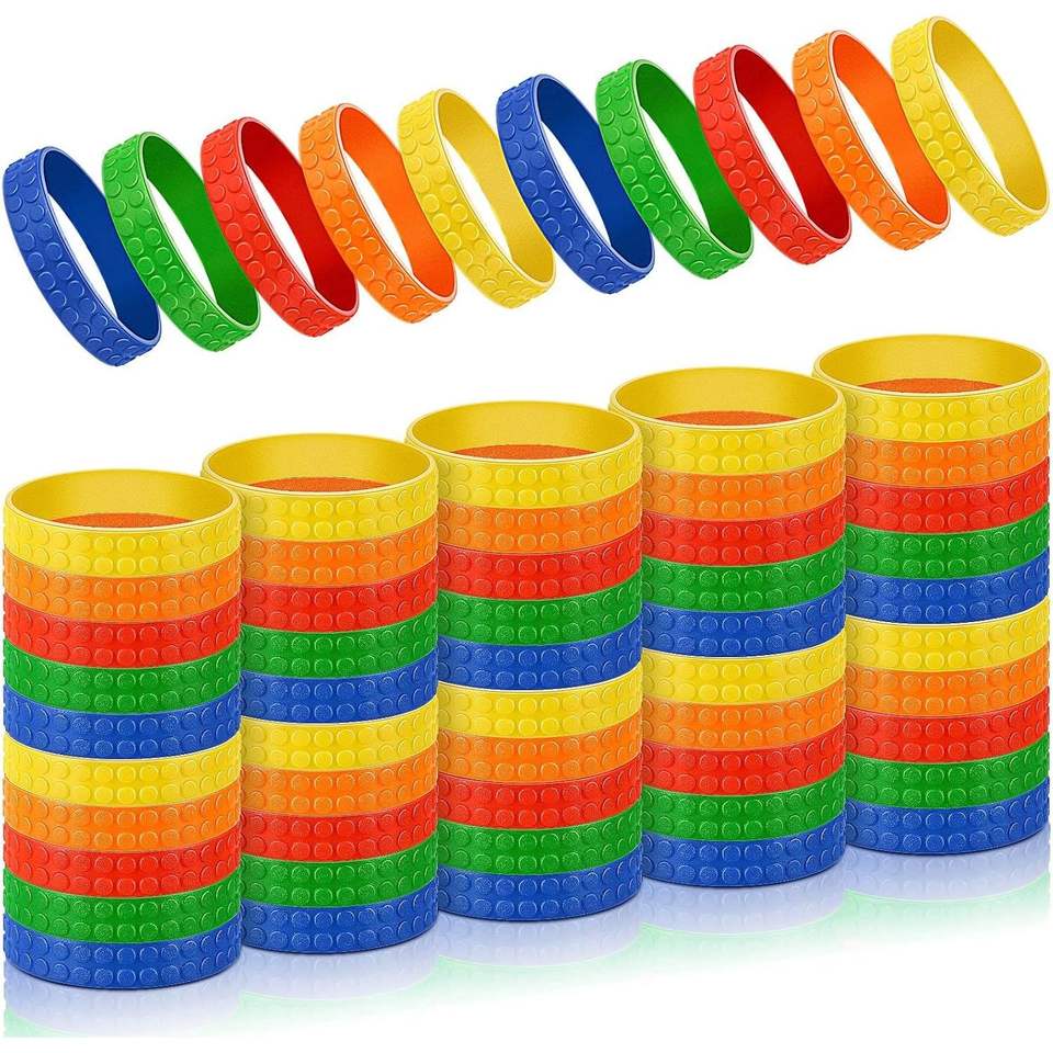 Set da 60 Braccialetti Colorati a Forma di Blocchi da Costruzione, Decorazioni per Feste, Braccialetti in Silicone