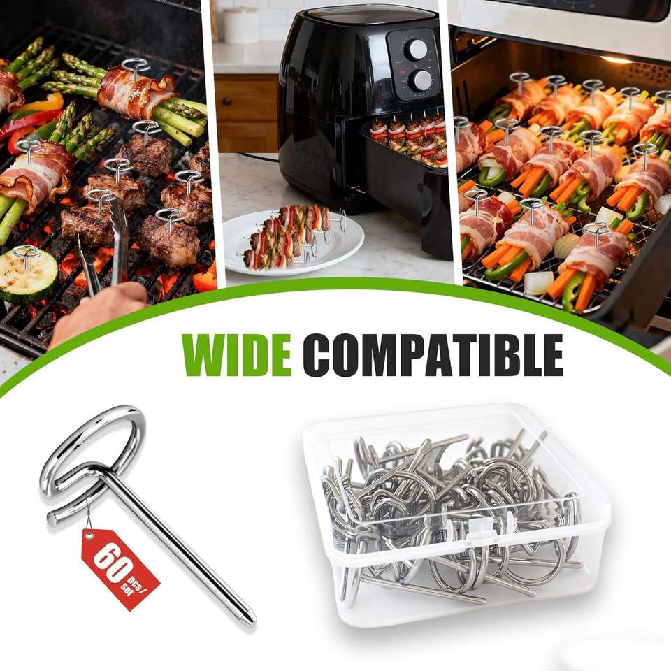 60 Spiedini Rotondi Riutilizzabili in Acciaio Inossidabile da 1,75 Pollici per BBQ, Compatibili con Friggitrice ad Aria - Migliora la Tua Grigliata