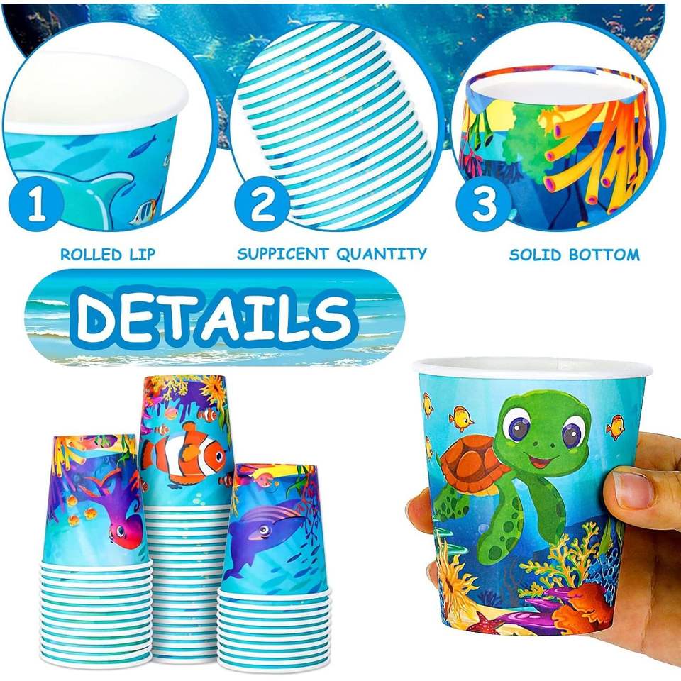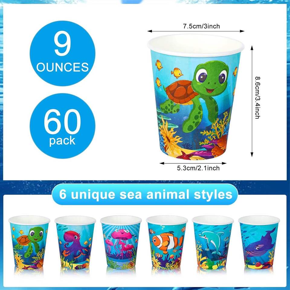 60 Bicchieri di Carta Monouso da 9oz con Motivi Marini Estivi, 60 Bicchieri per Bagno, Caffè, Tè, Tema Oceano