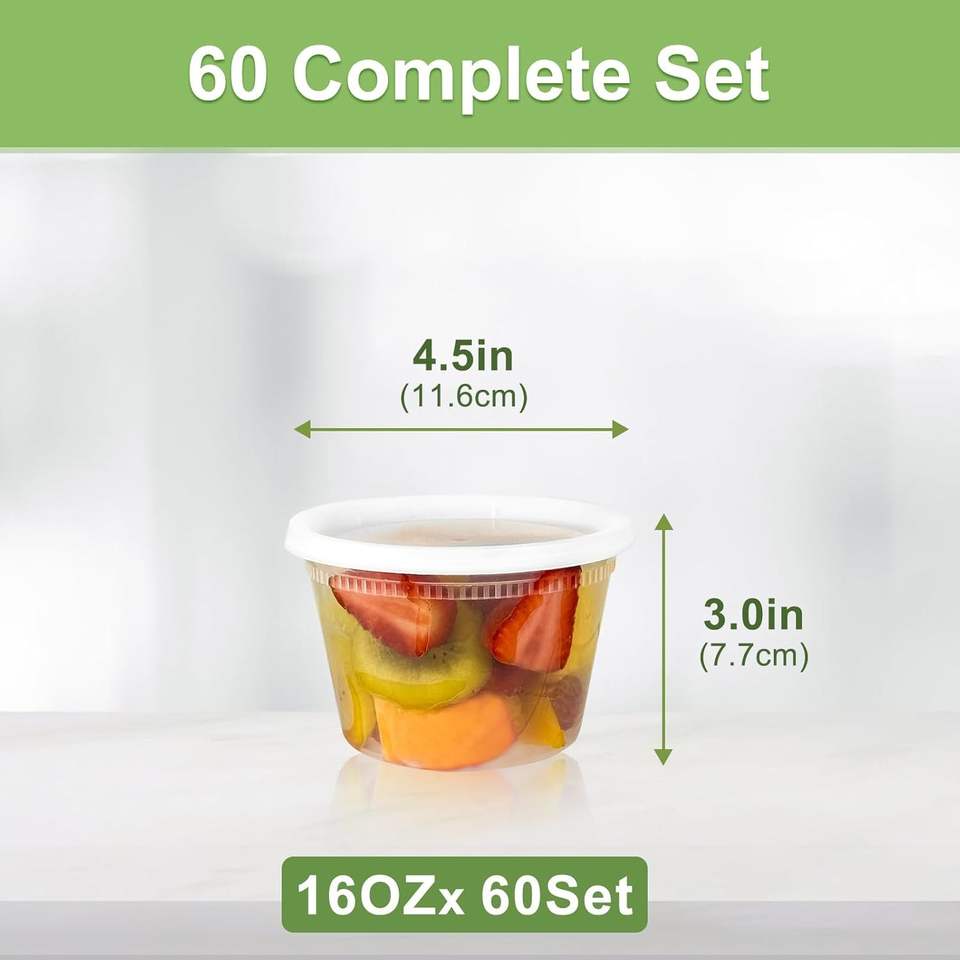 60 Set (120 Pezzi) Contenitori per Alimenti da 16 oz, Ermetici, Senza BPA, con Coperchi, in Plastica, per Conservazione e Asporto