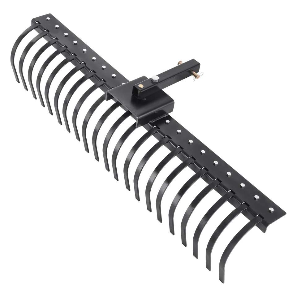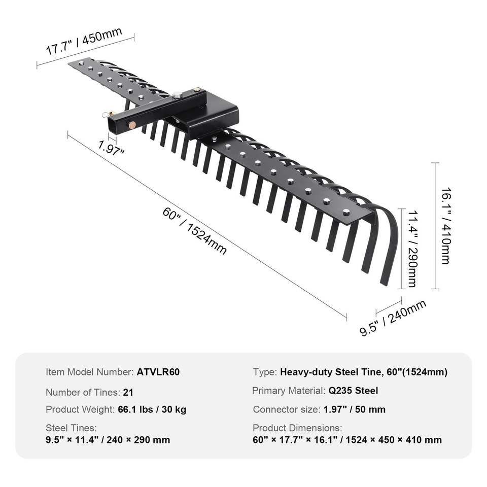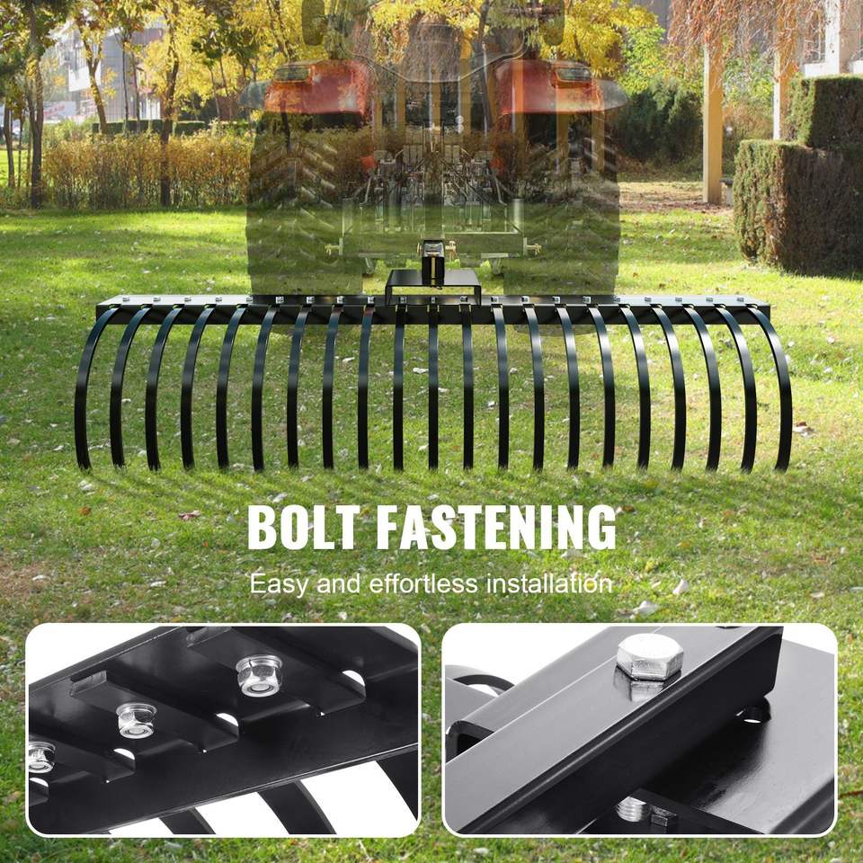 Rastrello da Giardino Trainabile da 60 Pollici con 21 Denti a Spirale in Acciaio, Rastrello Scarificatore per Prato, Compatibile con Barre Porta Attrezzi da 48 e 60 Pollici