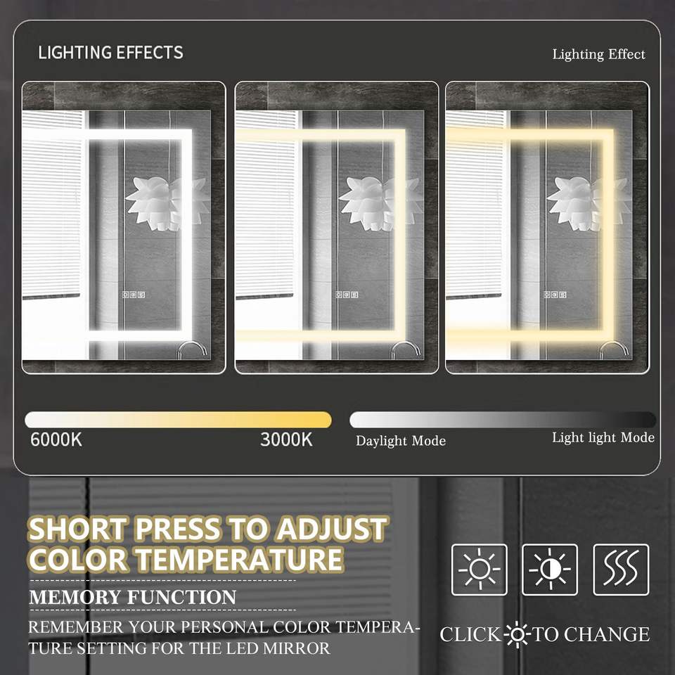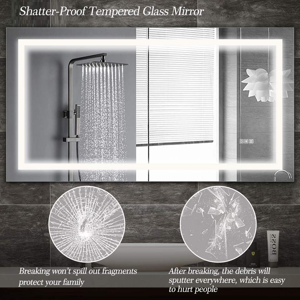 Specchio da Bagno LED Moderno Senza Cornice 60 x 32 Pollici, Antiappannamento con Sensore Touch, Specchio Illuminato da Parete per Doccia e Spazi Ristretti
