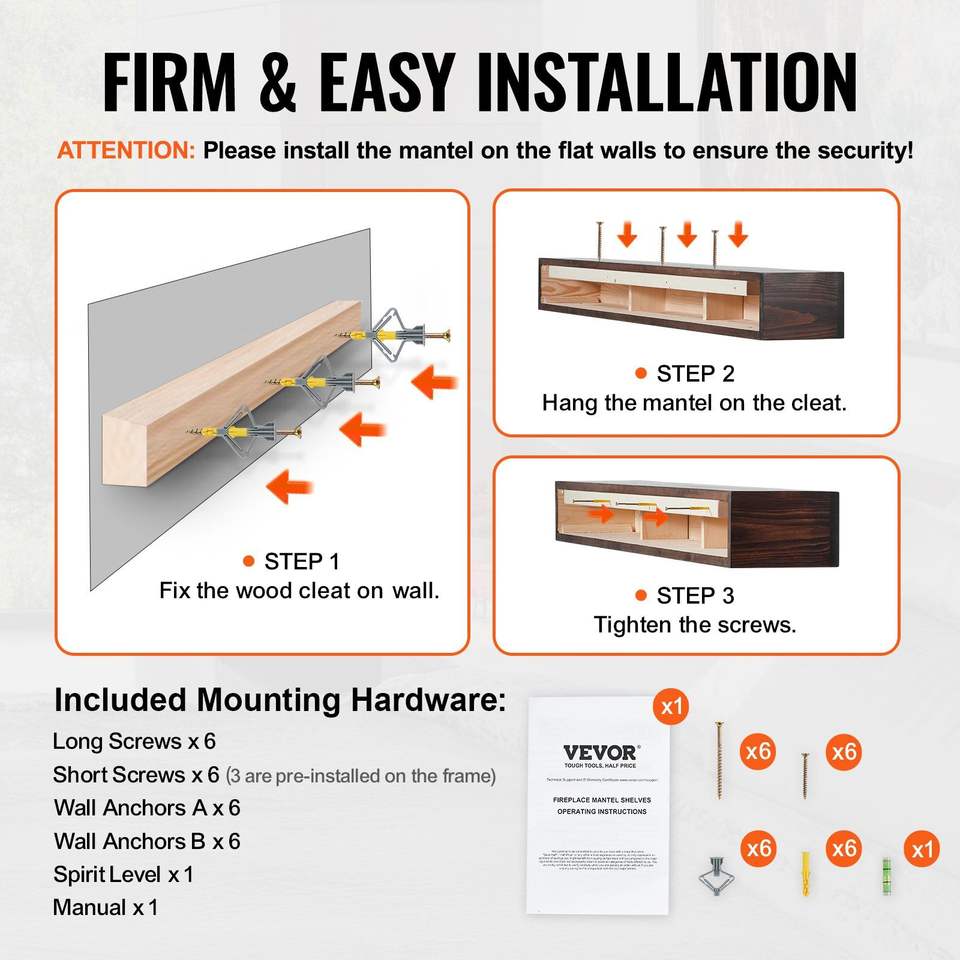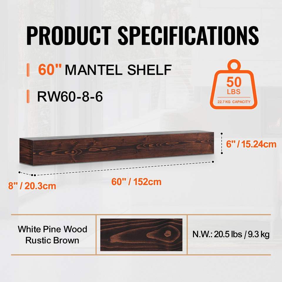 Mensola per Caminetto in Legno Naturale 60'' X 8'', Capacità di Carico 50 Libbre, Mensola Galleggiante da Parete Stile Rustico