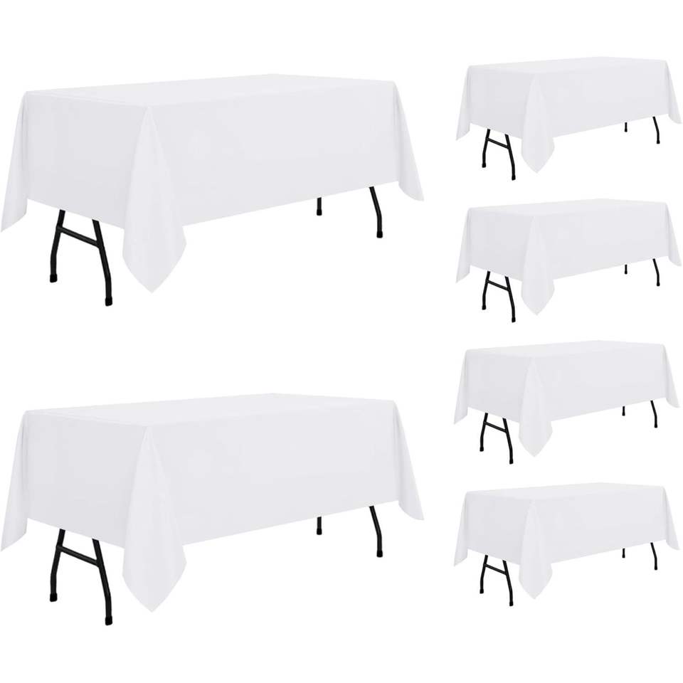 Tovaglia Rettangolare Bianca 60 X 84 Pollici, Lavabile in Poliestere, Resistente a Macchie e Pieghe, per Tavoli da 4 Piedi - Confezione da 6